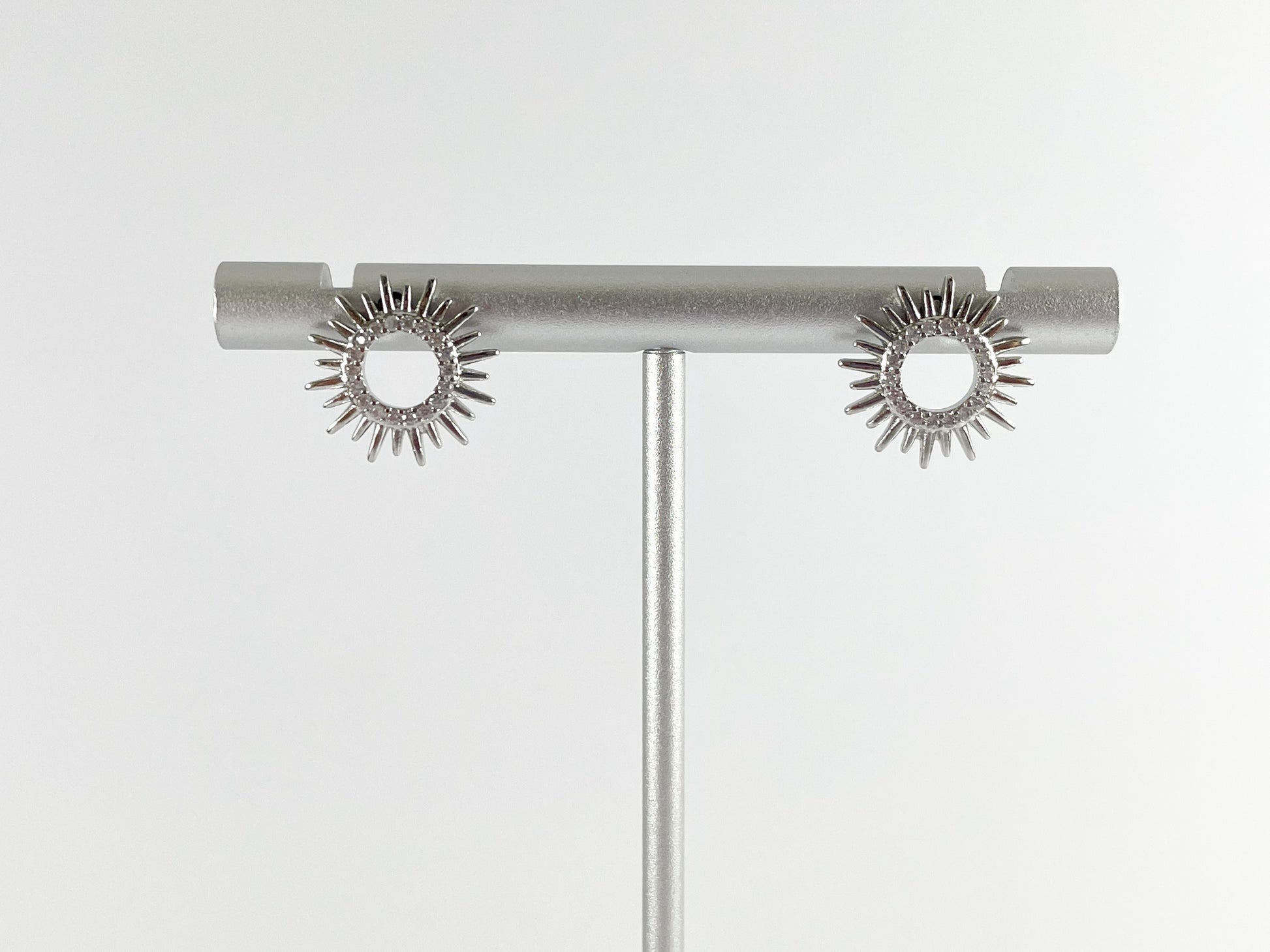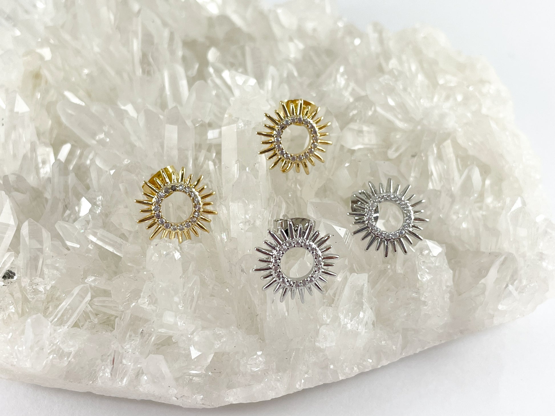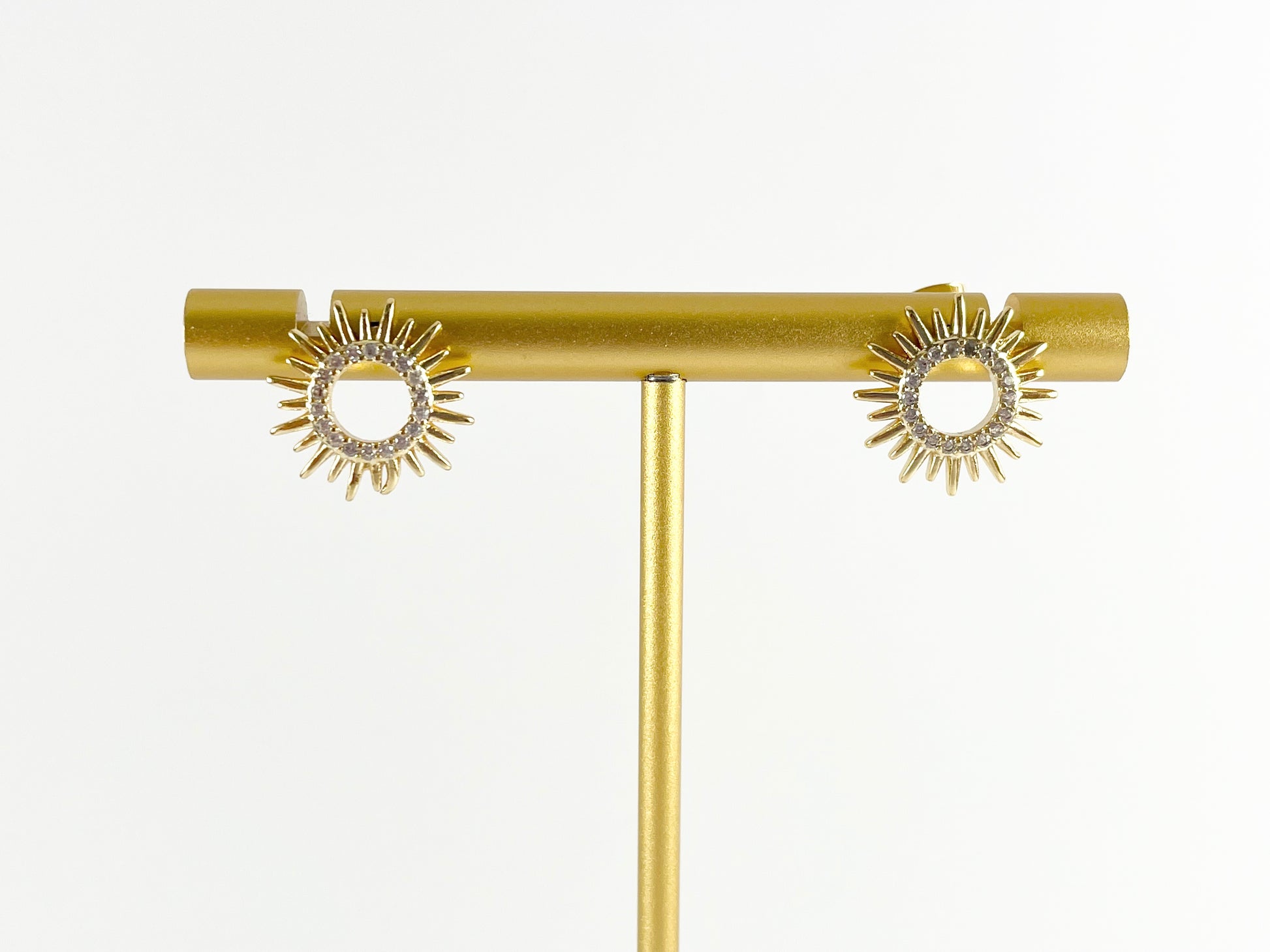 Real 18K chapado en oro/platino CZ Pave Sunburst Sun Circle Pendiente Stud sobre cobre 5 pares