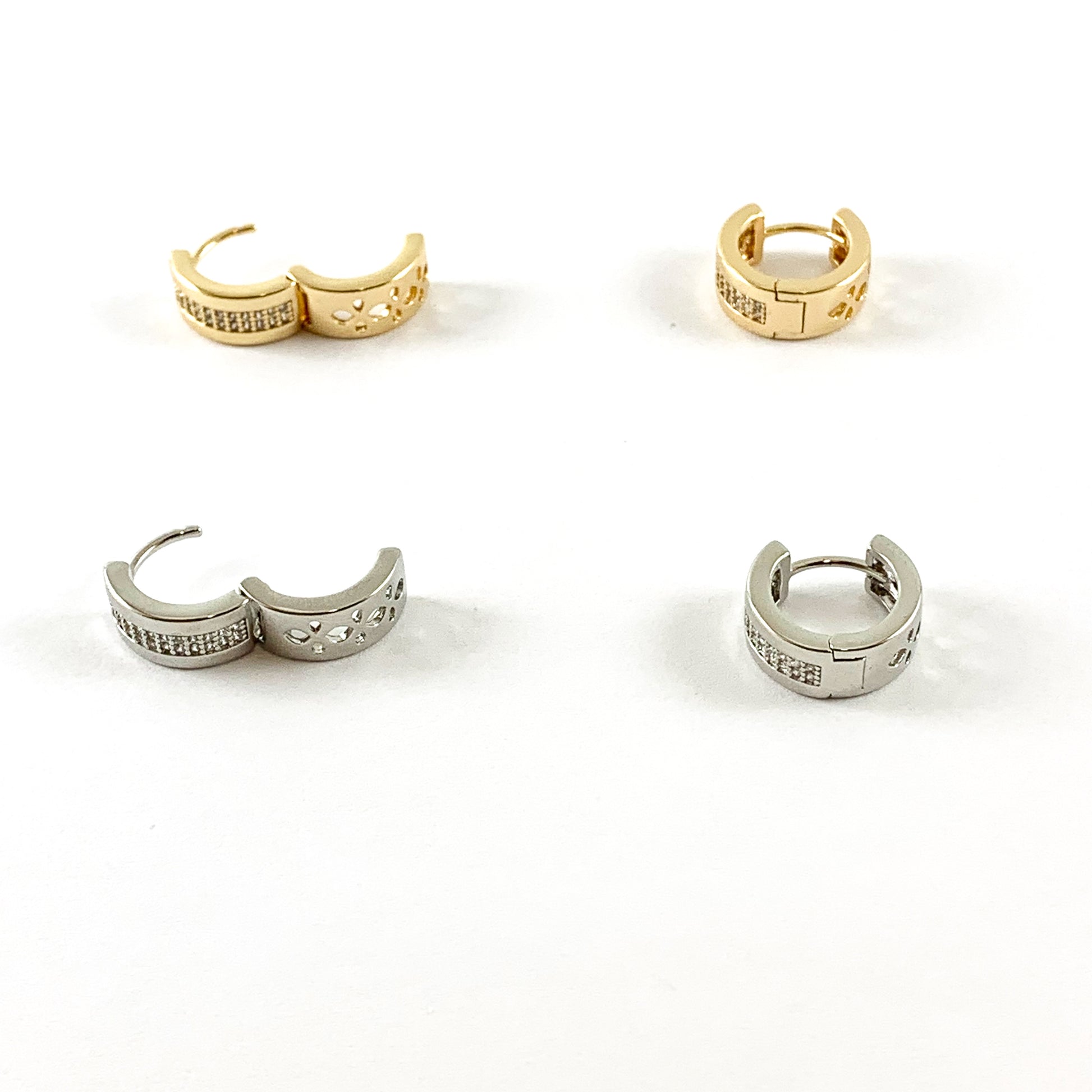 Pendientes de aro Huggies con micro pavé de circonita cúbica de oro real de 18 quilates, 3 pares
