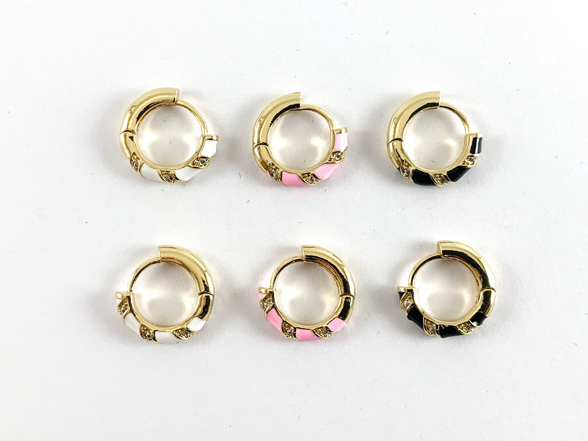 Pendiente circular esmaltado con pavé de circonita chapada en oro real de 18 quilates Huggies, 4 pares