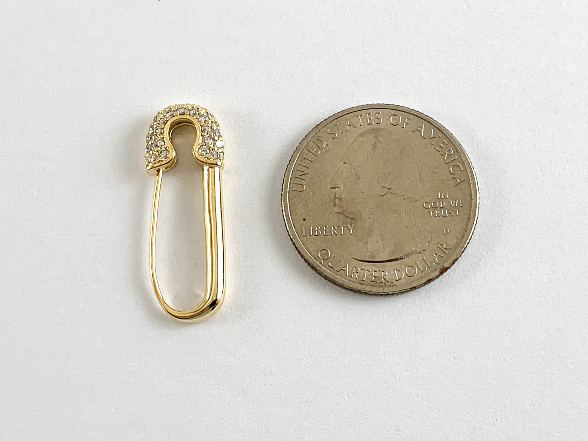 Colgante con forma de imperdible de seguridad pavimentado con circonita cúbica chapada en oro real de 18 quilates sobre latón, 6 piezas