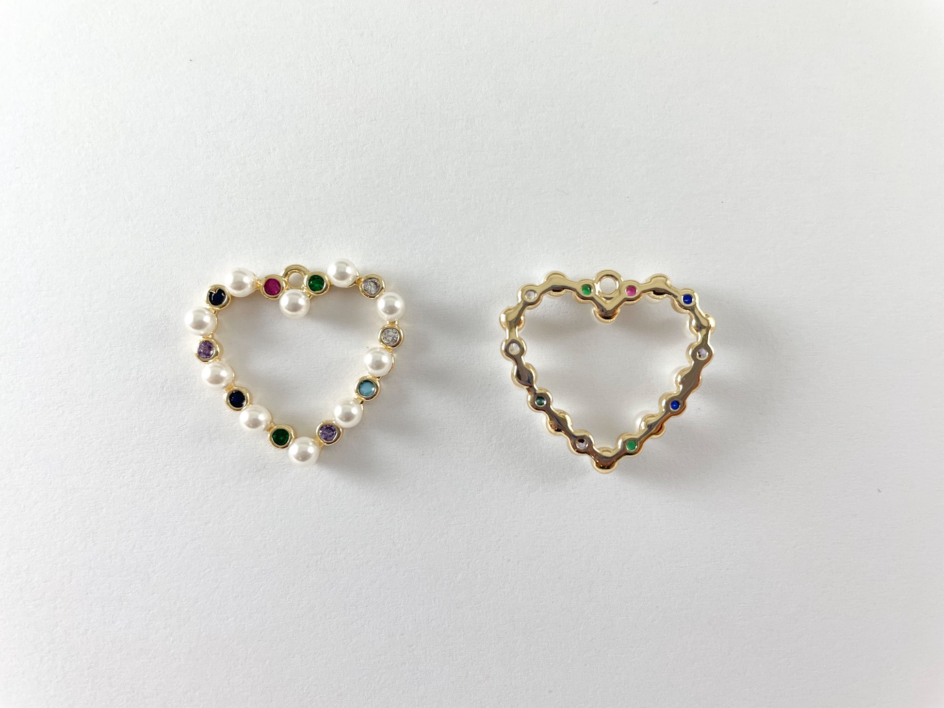Estos delicados colgantes de corazón de perlas están chapados en oro real de 18 quilates con una base de latón. Estos pueden ser maravillosos para hacer pulseras, collares, pendientes e incluso usarse para manualidades.