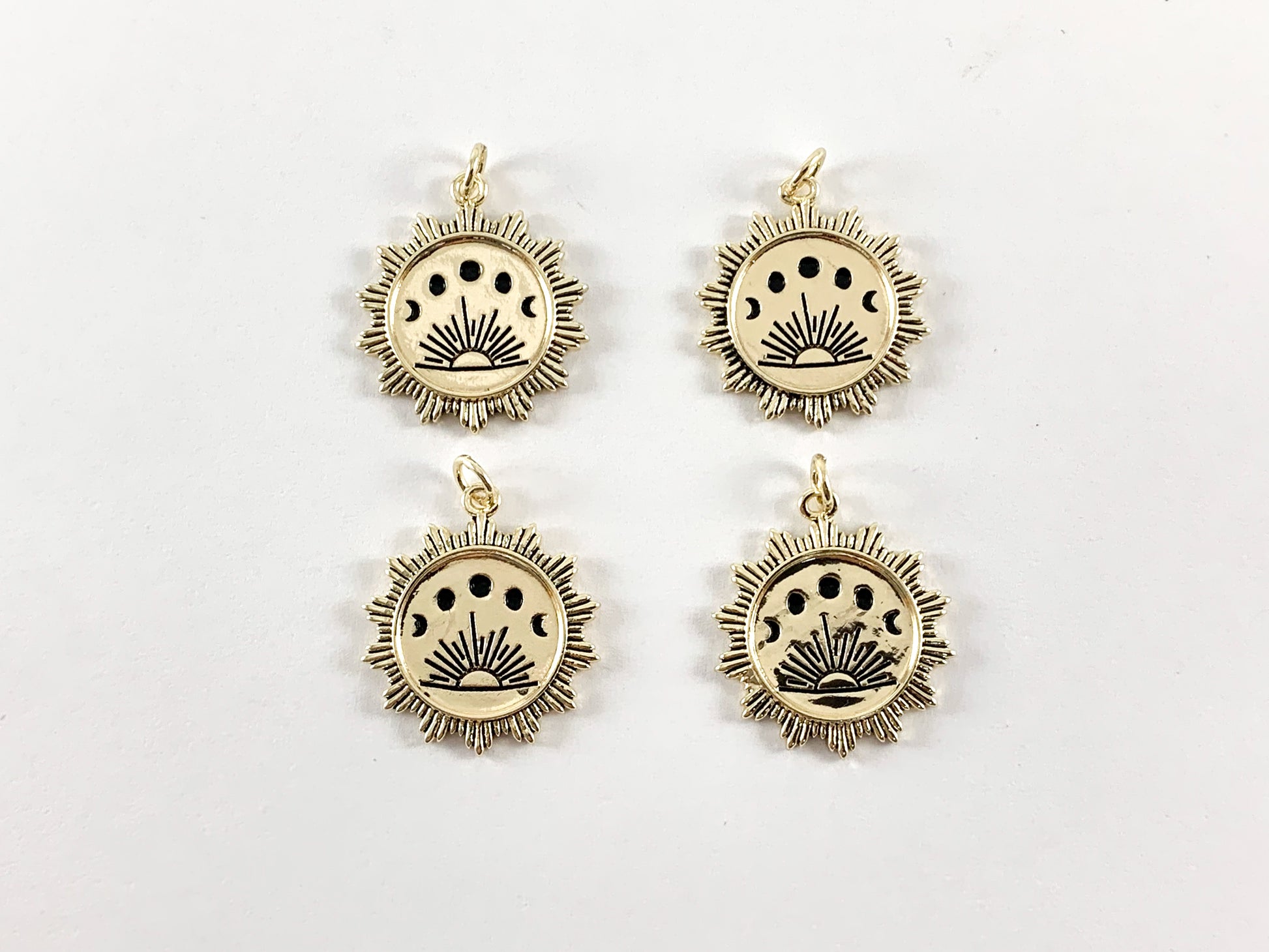 Estos lindos dijes de puesta de sol con monedas pequeñas están chapados en oro real de 18 quilates con una base de latón. Estos dijes pueden ser maravillosos para hacer pulseras, collares delicados, pendientes e incluso usarse para manualidades.