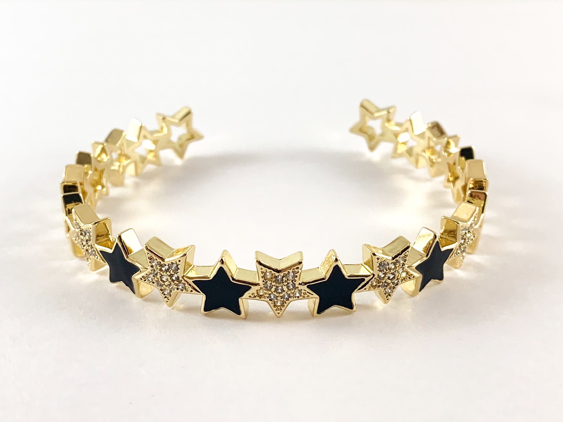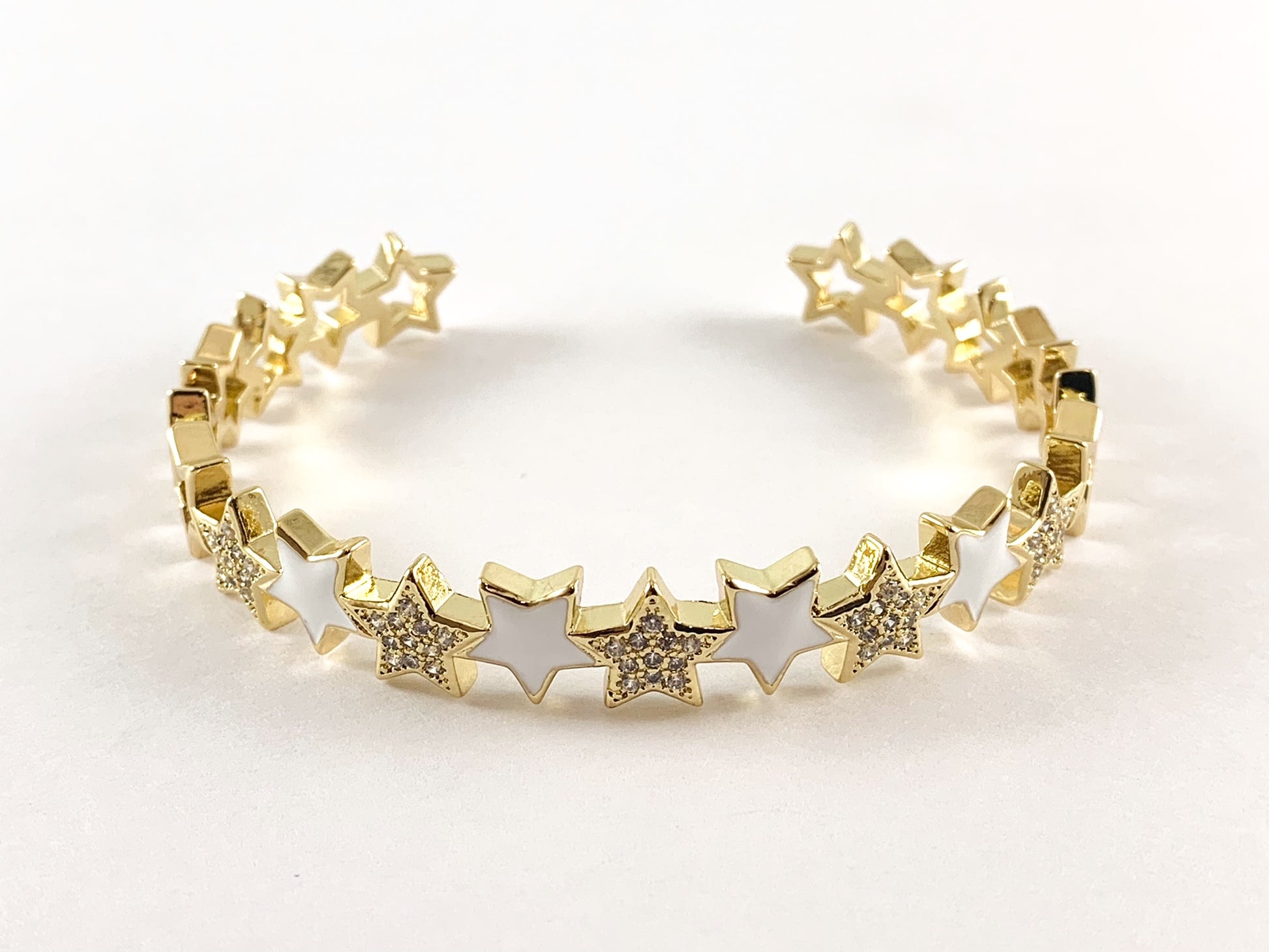 Brazalete ajustable con estrella de cobre pavimentada con circonita cúbica esmaltada chapada en oro real de 18 quilates, 1 unidad