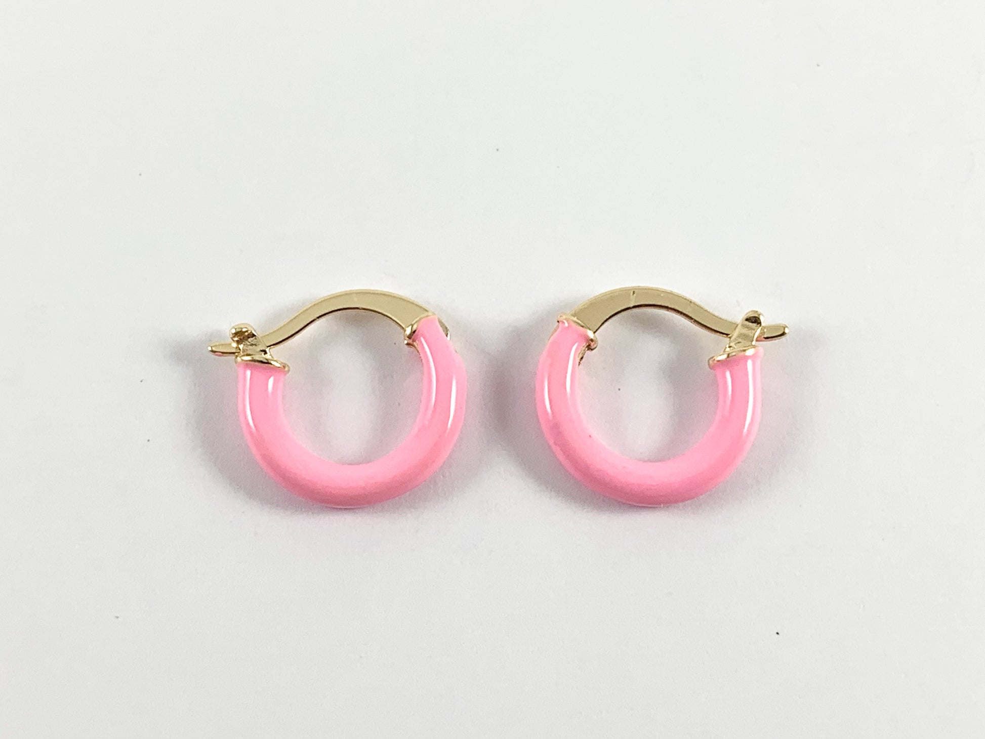 Pendientes de aro Huggies de oro blanco rosa esmaltado chapado en oro real de 18 quilates, 5 pares