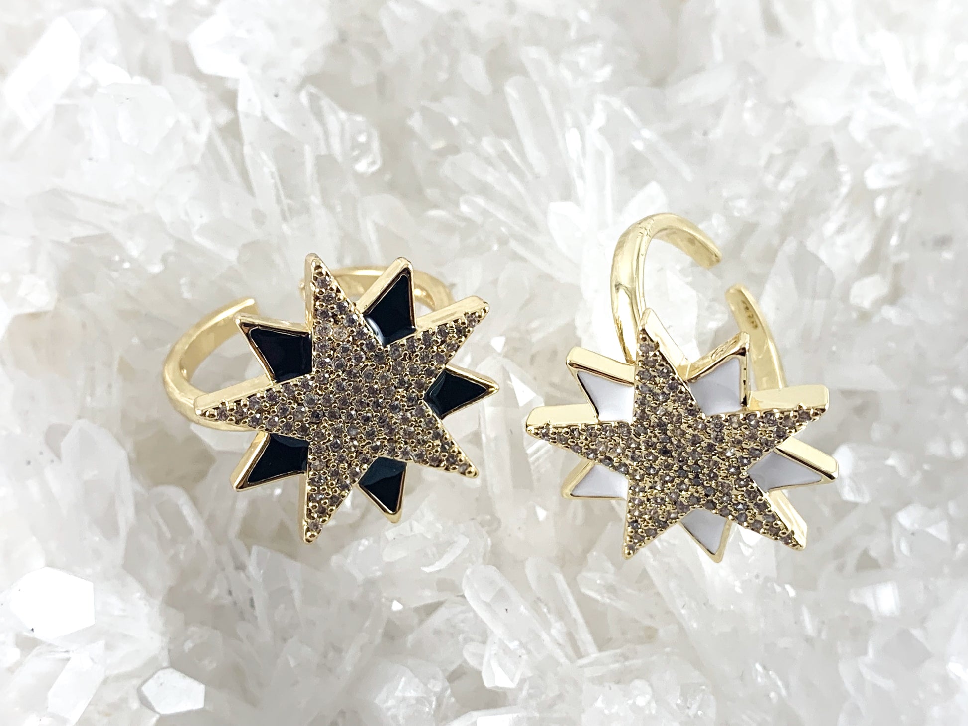 Estos bonitos anillos de esmalte en forma de estrella están chapados en oro real de 18 quilates con una base de latón. Son únicos y hermosos. ¡Definitivamente llamaría la atención de todos!
