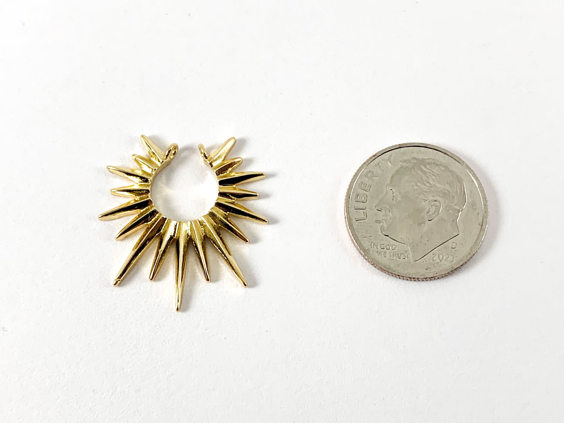 Estos bonitos componentes con forma de rayos de sol están chapados en oro real de 18 quilates con una base de cobre. ¡Se pueden usar para aretes e incluso un colgante!