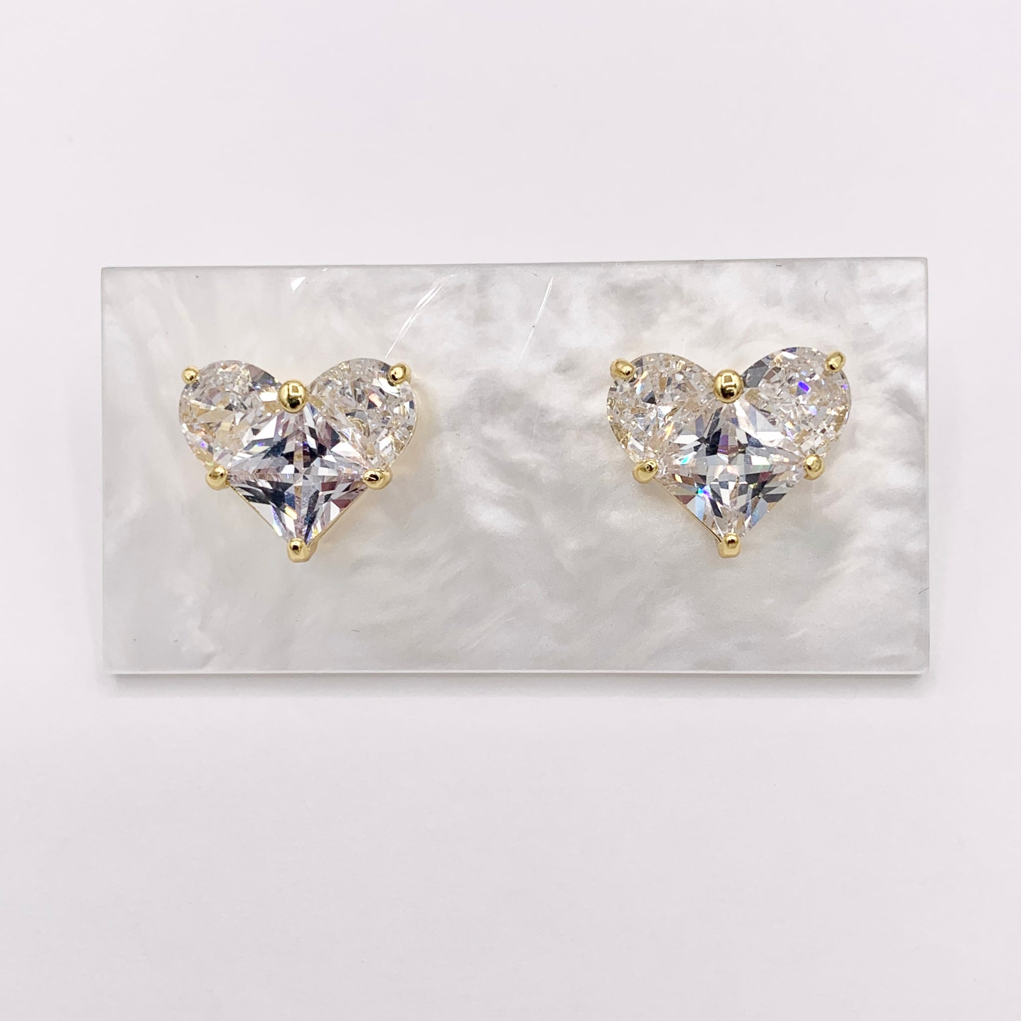 Heart Earring Studs in Cubic Zirconia 18K Gold plated Copper
