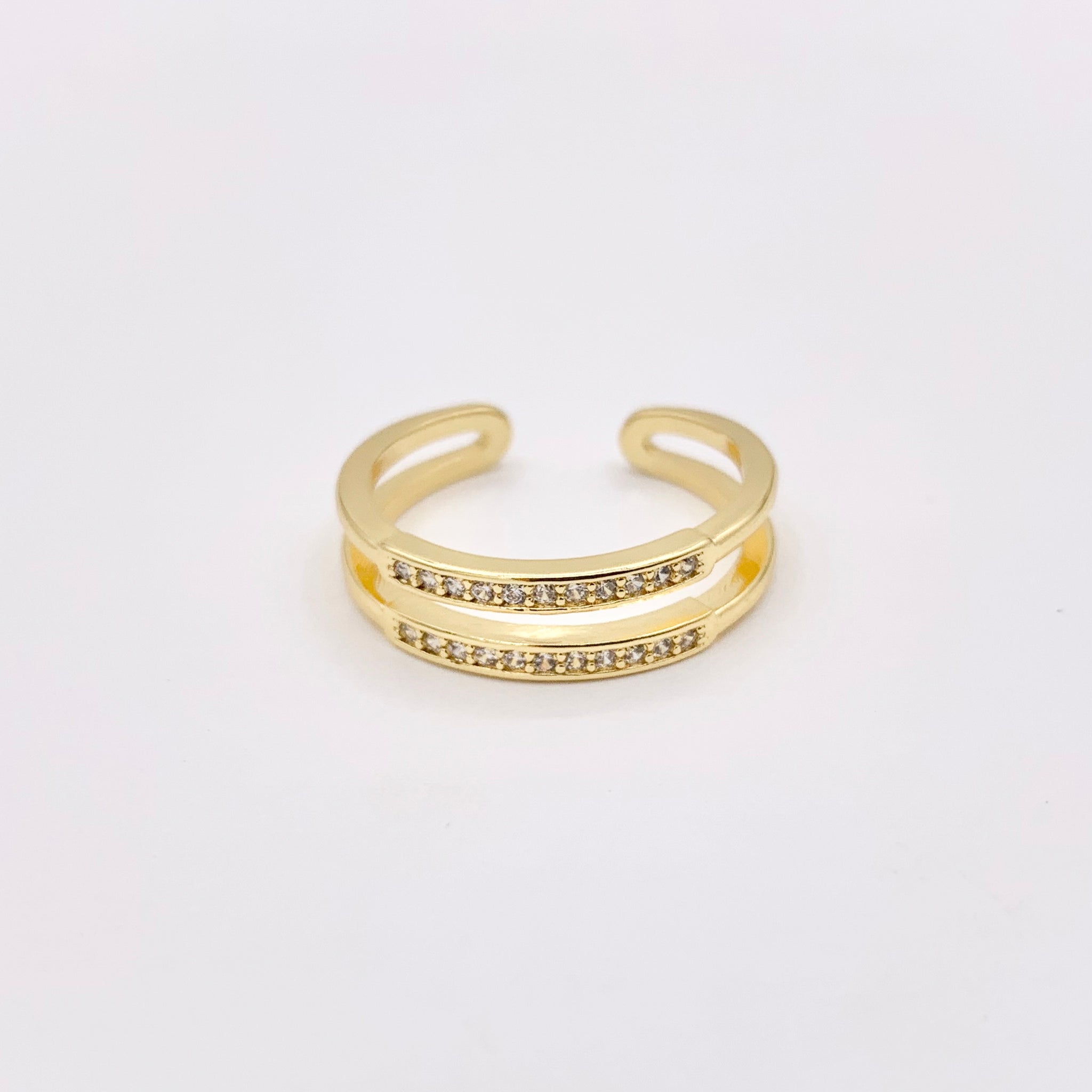 Simple Cubic Zirconia Double Band Ring in 18K Gold Plated Adjustable Ring