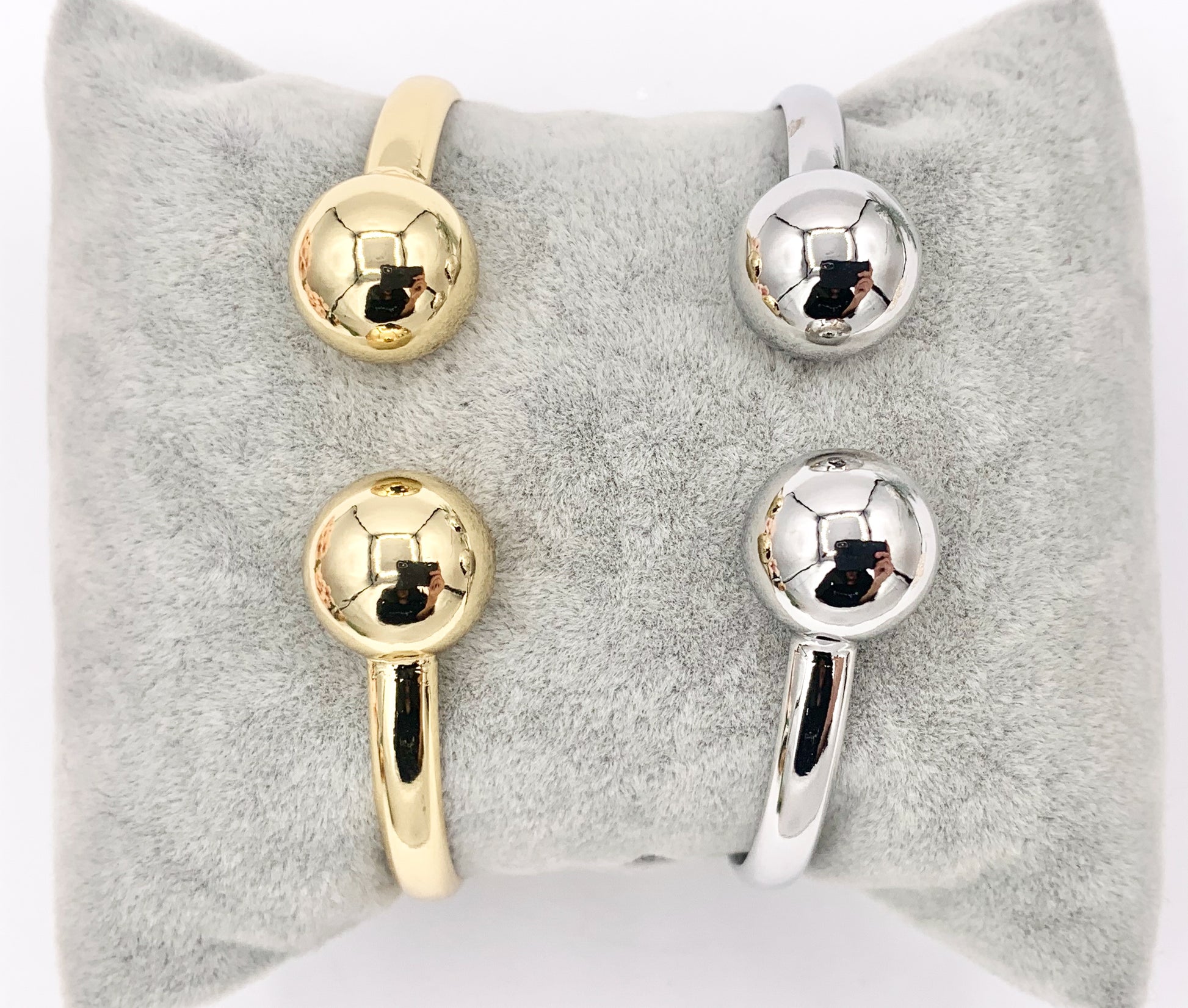 Simple Minimalist Adjustable Open Front Ball End Bracelet Cuffs in Real Gold/Platinum 18K Plated Copper 2 PCS