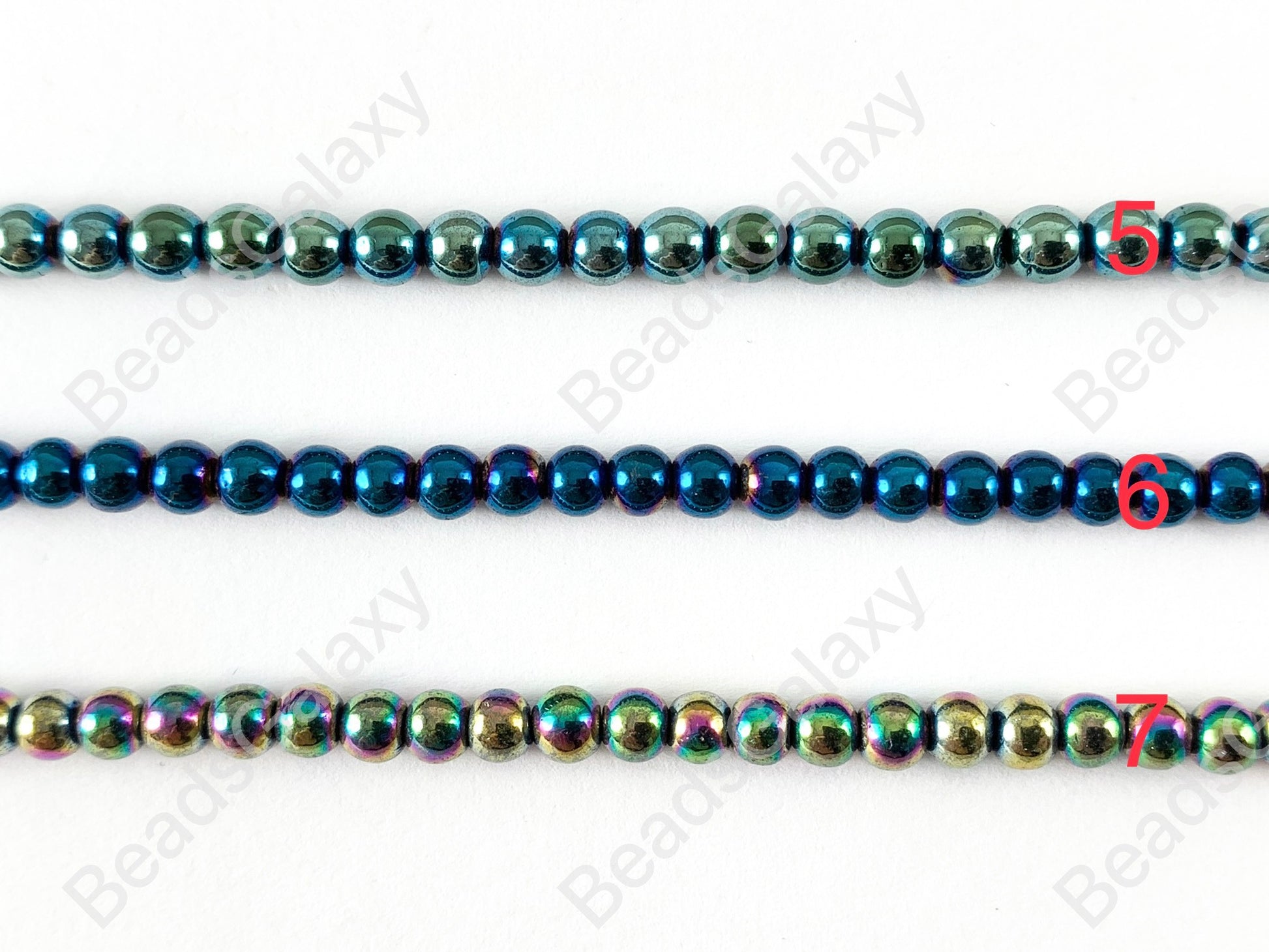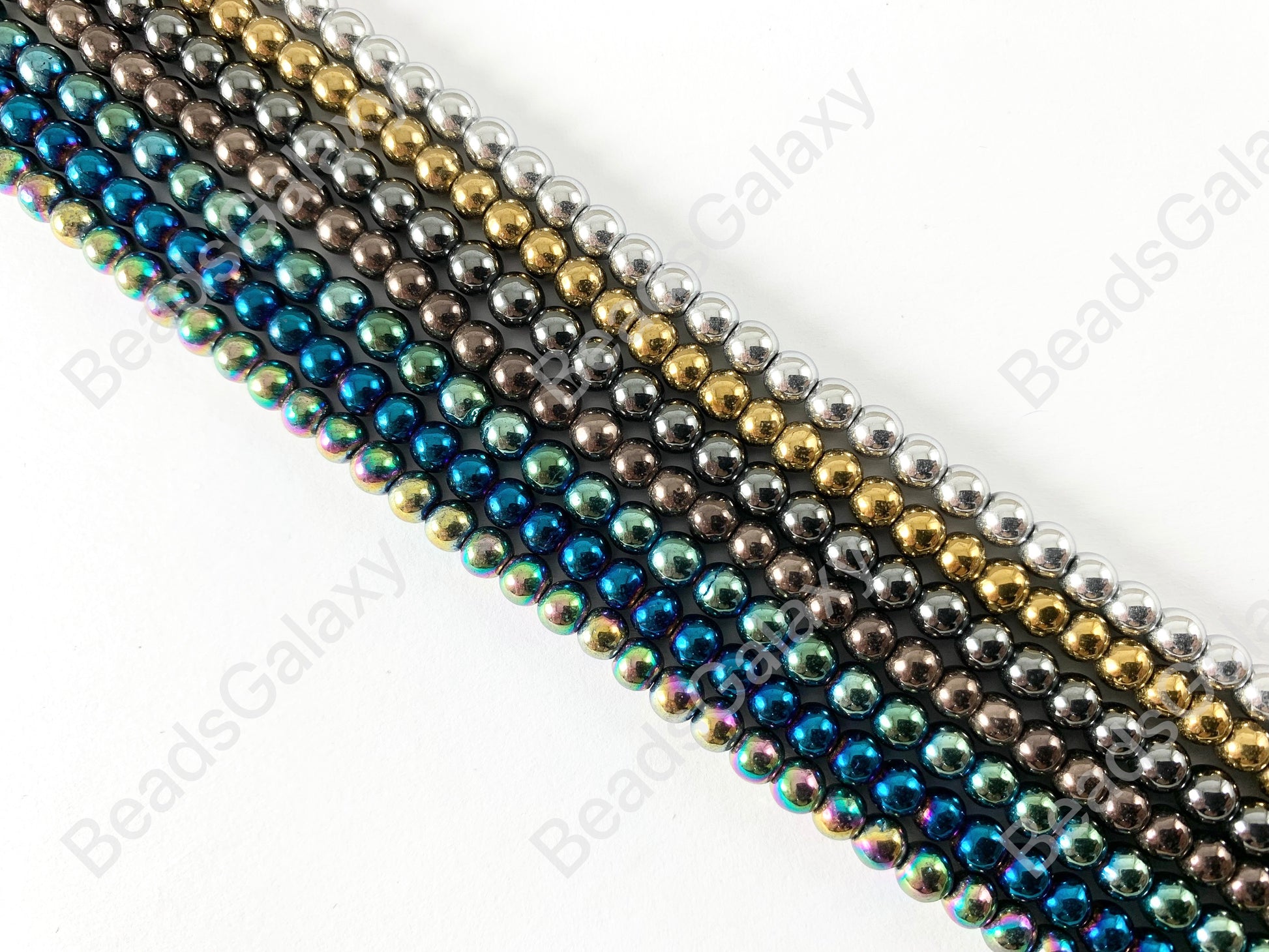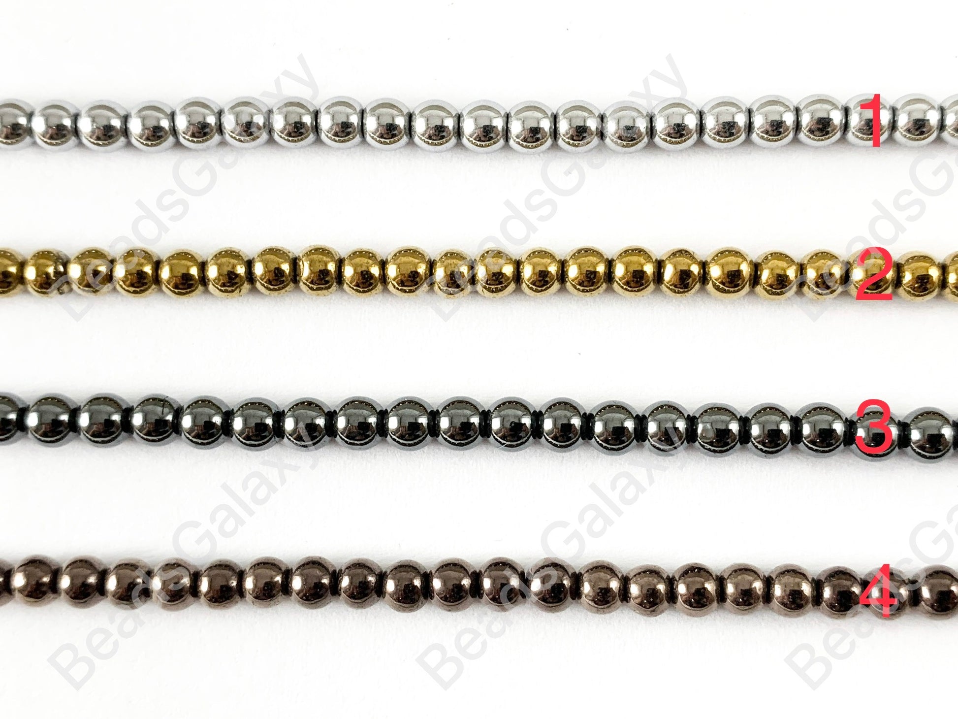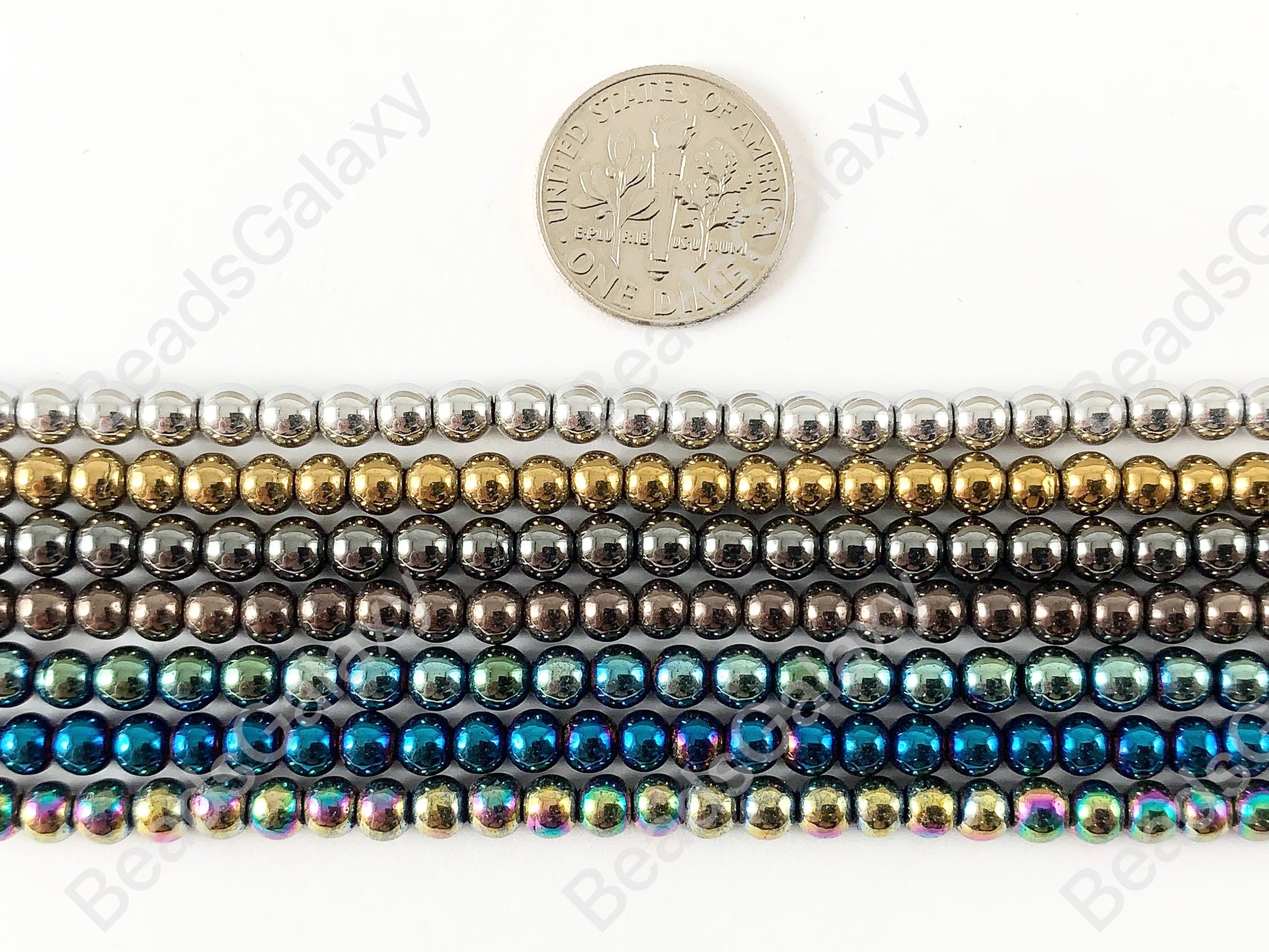 Cuentas de energía redondas de hematita natural lisas de 4 mm alrededor de 15 "-16" Plata metálica Oro Bronce Cobre Gunmetal Negro Multi Marrón Verde Azul