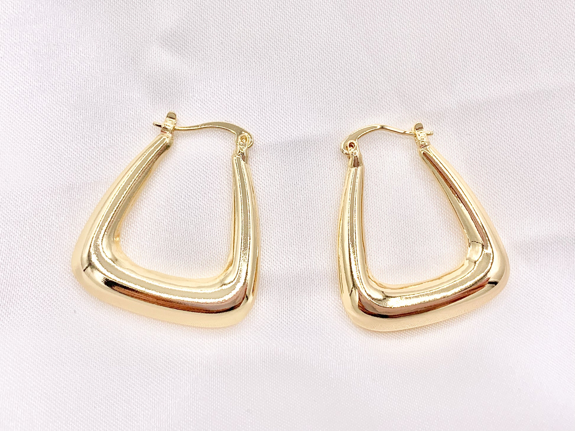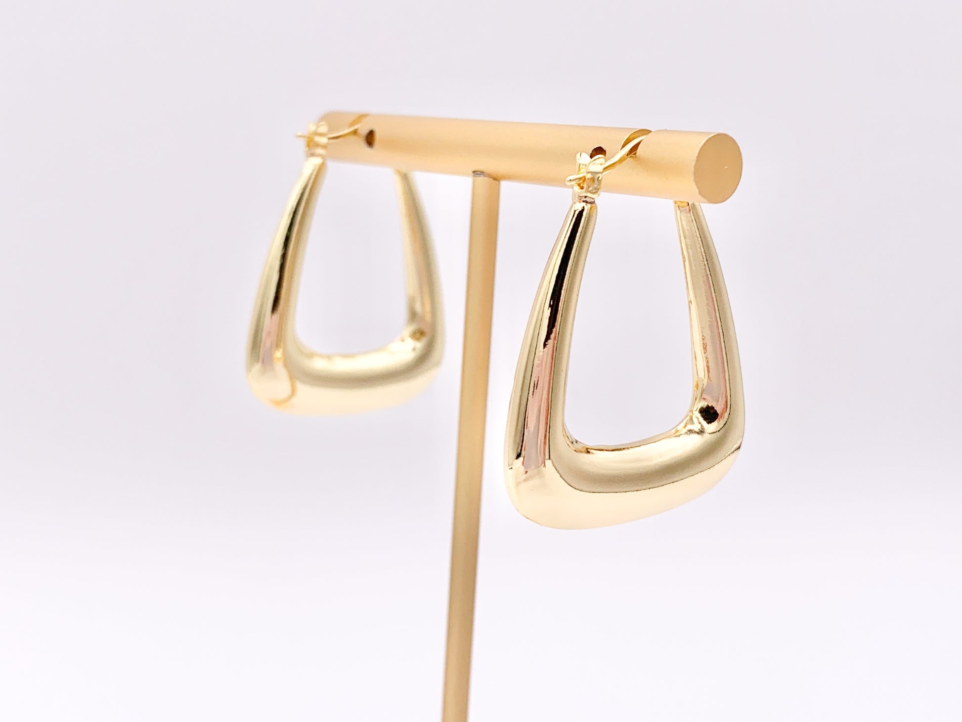 Pendientes con cierre trasero llamativos geométricos triangulares trapezoidales en cobre chapado en oro de 18 quilates