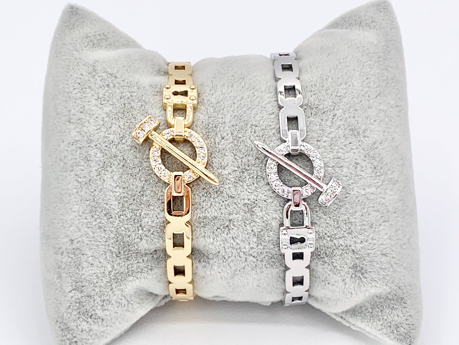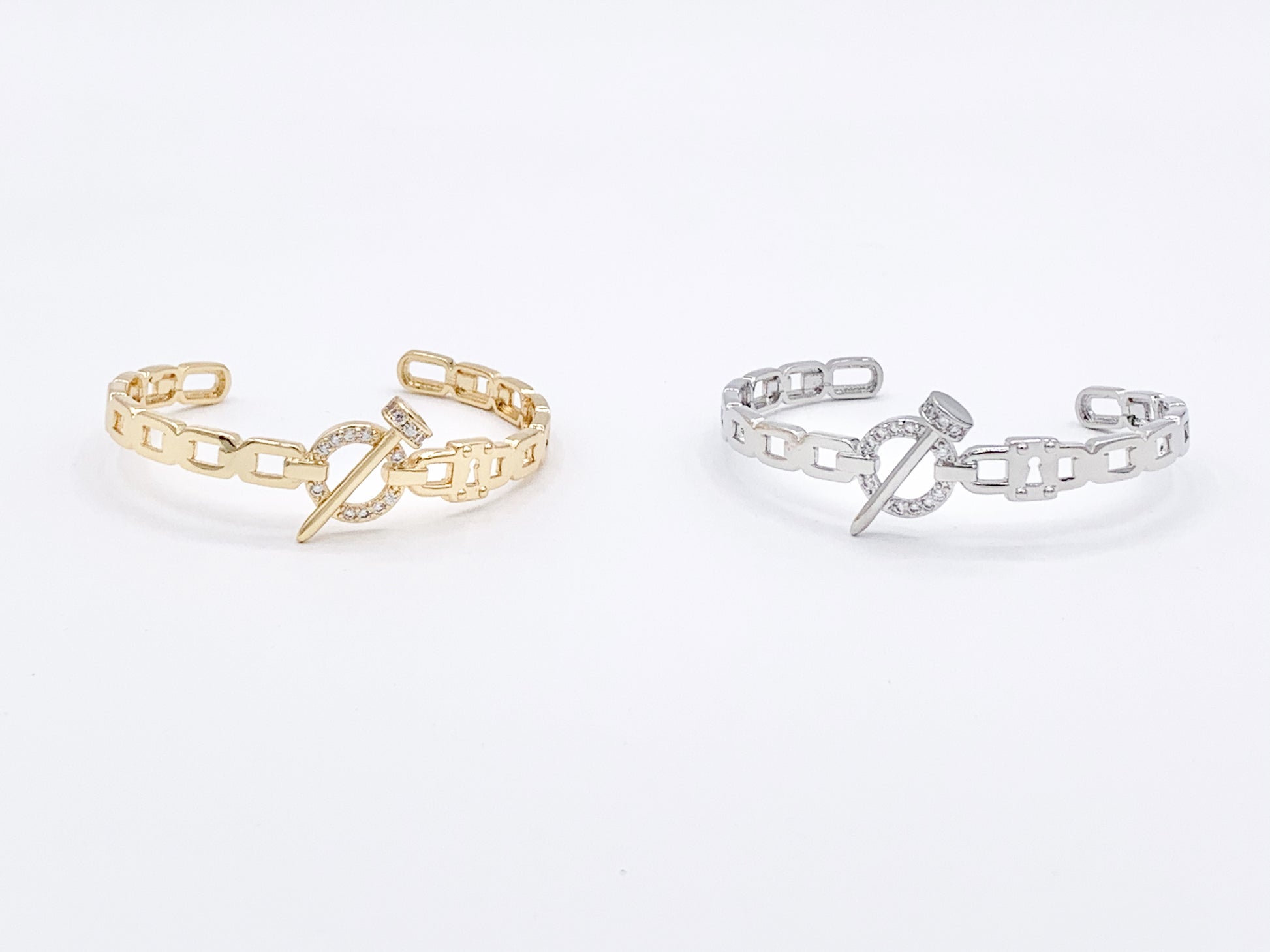 Diseñador de moda como CZ Pave Rhinestone Link Lock Nail pulsera ajustable puños en oro real de 18 quilates/cobre chapado en platino
