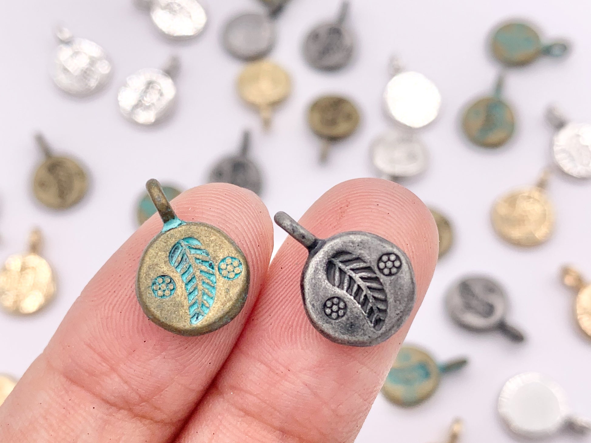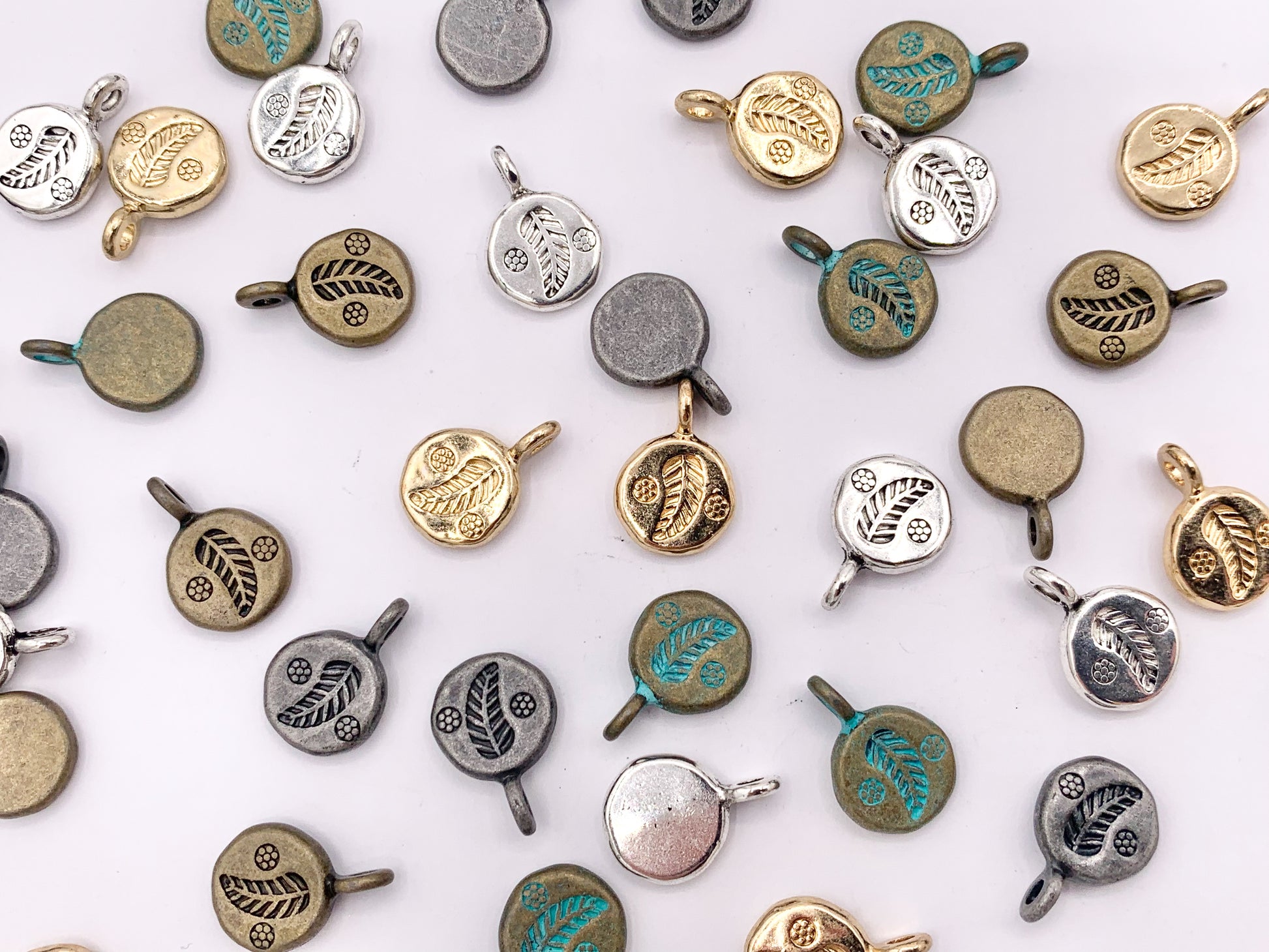 These leaf coin charms are perfect for bracelets, necklace and any jewelry designs!