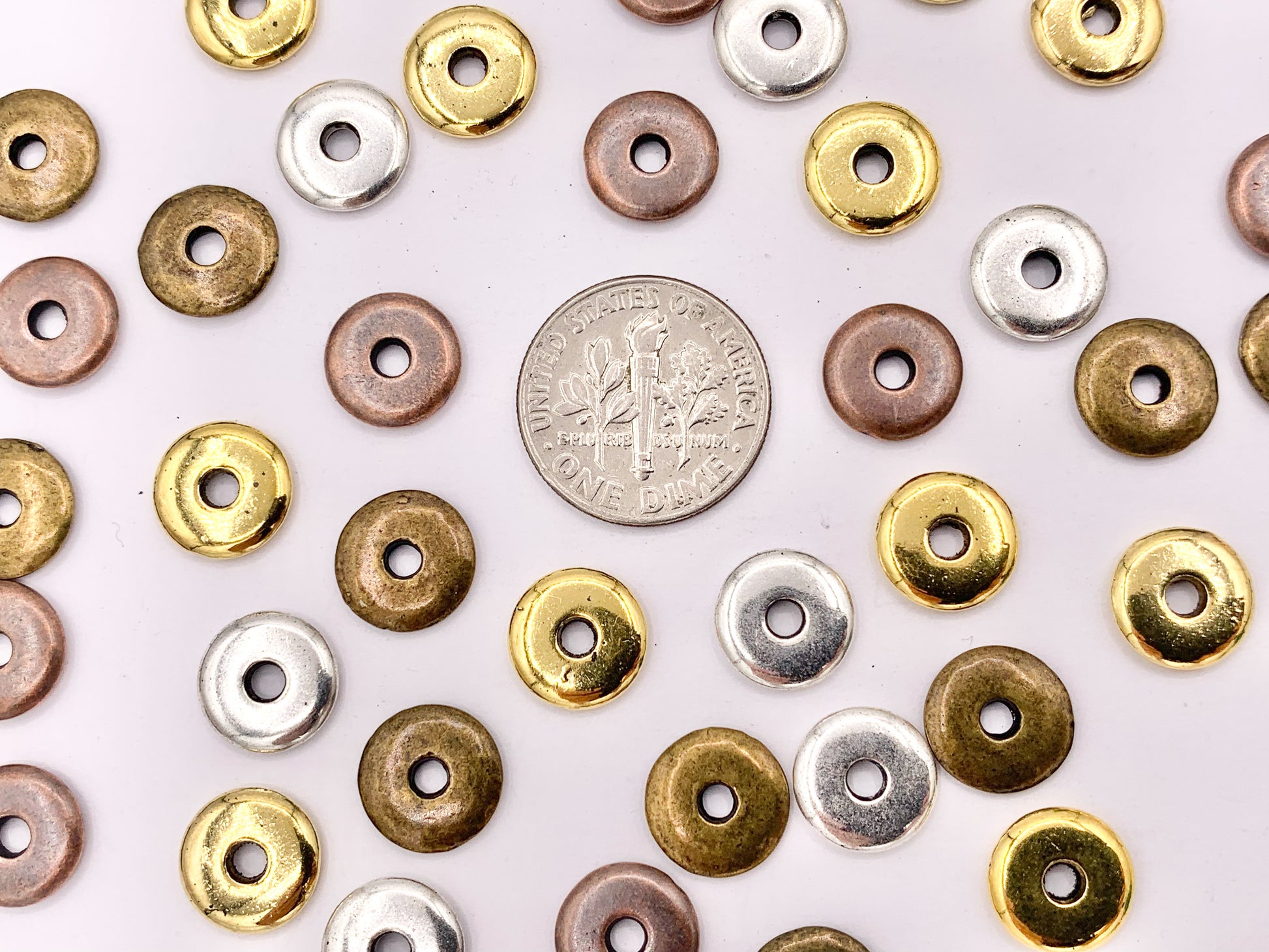 10mm Pewter Thin Disc Spacer Beads in Gold, Silver, Copper and Bronze Color 125g