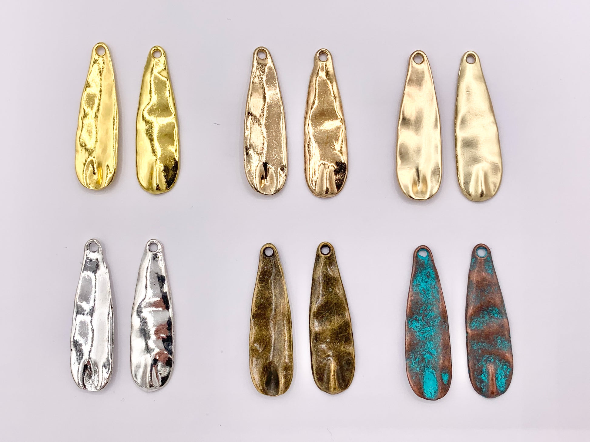 10x36mm Pewter Hammered Thin Teardrop Pendants Bulk Order in Matte Gold, Gold, Silver, Brass and Patina