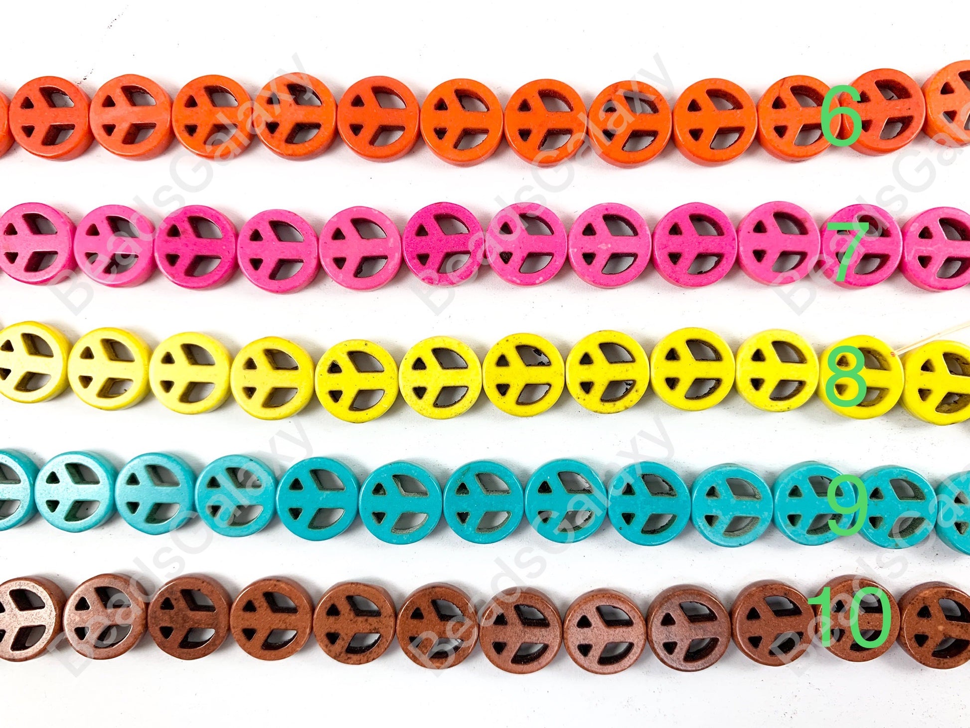 12mm Peace Sign Howlite Turquoise Flat Coin Disc Beads 10 Colors Available Around 15"