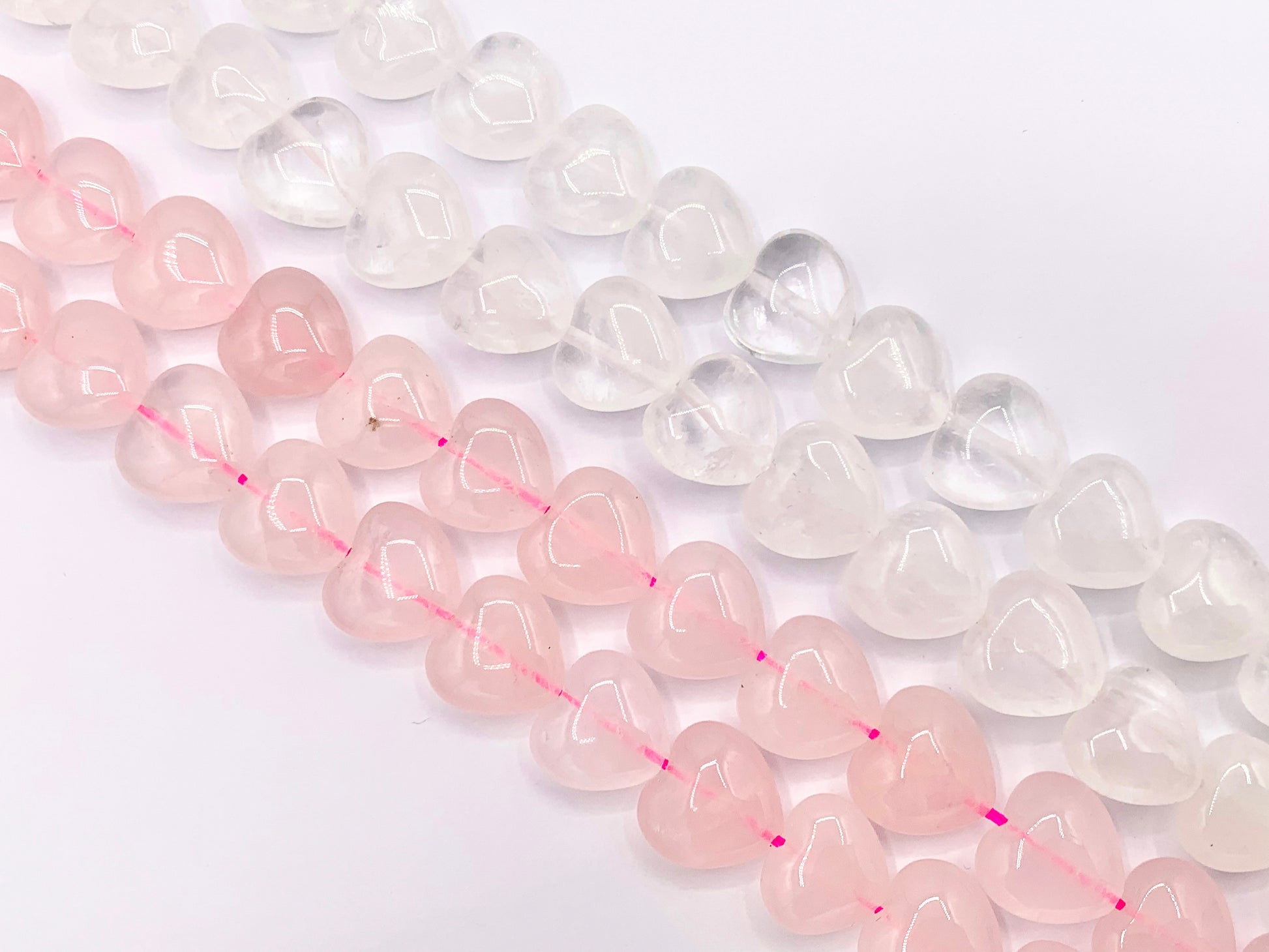 12mm Shiny Heart Shape Natural Quartz/ Rose Quartz Gemstone Beads Valentine's Day White And Pink Heart Beads 15" Price Per Strand