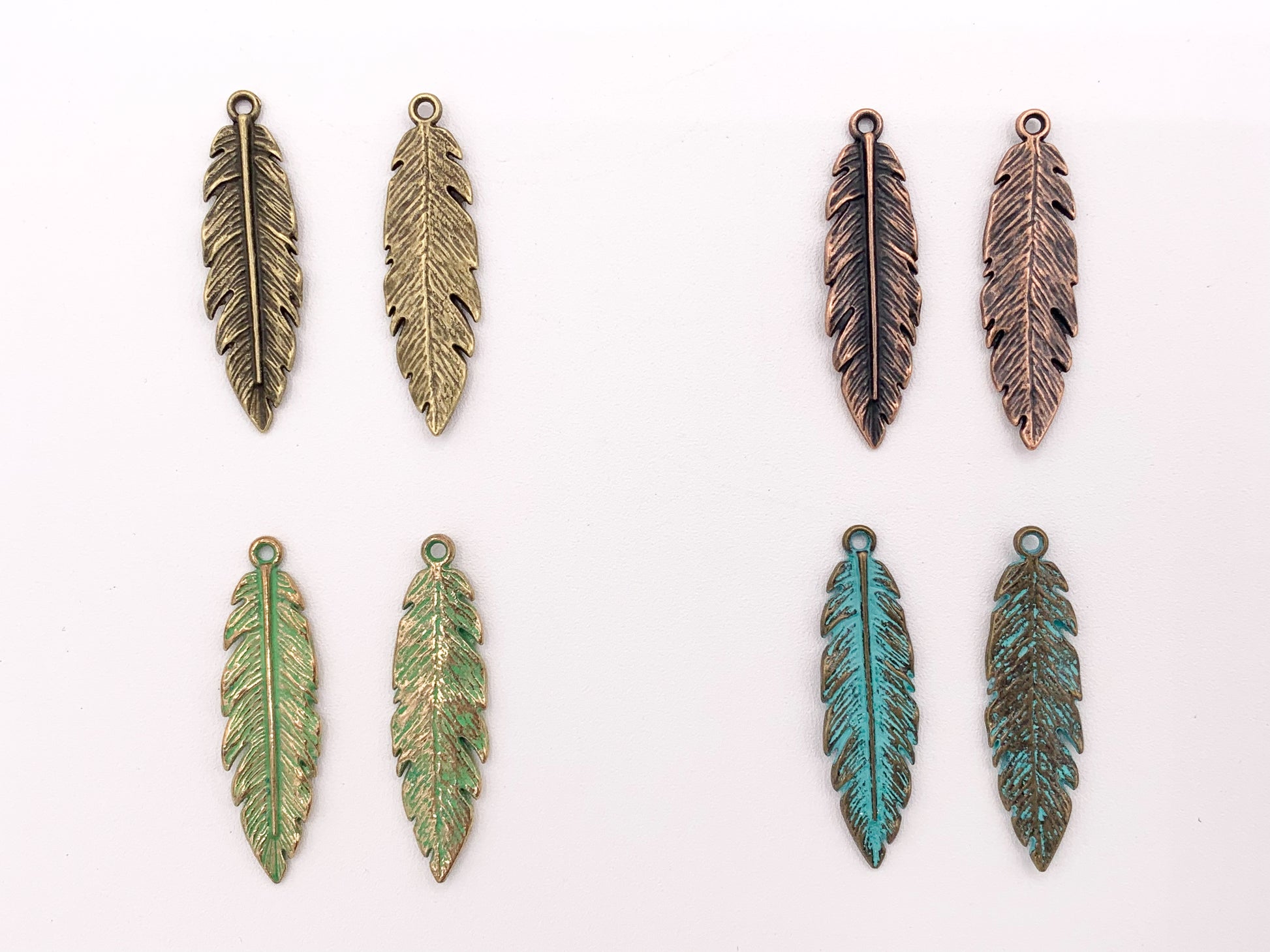 12x41mm Pewter Detailed Leaf Pendants Bulk Order in Rosy Gold, Antique Gold, Silver, Copper, Brass, Gunmetal, Blue And Green Patina