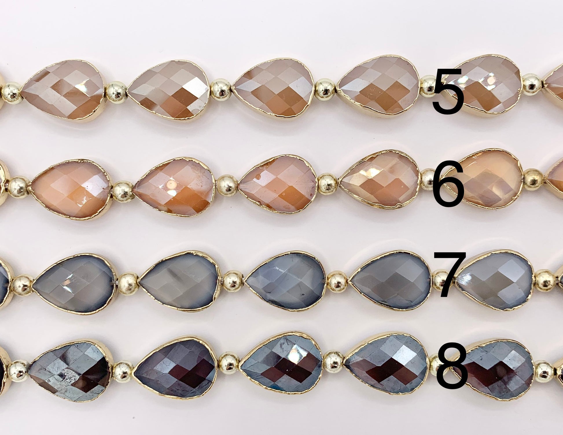 13x18mm Gold Trimmed Faceted Shiny Dyed Glass Teardrop Crystal Strands Around 8"
