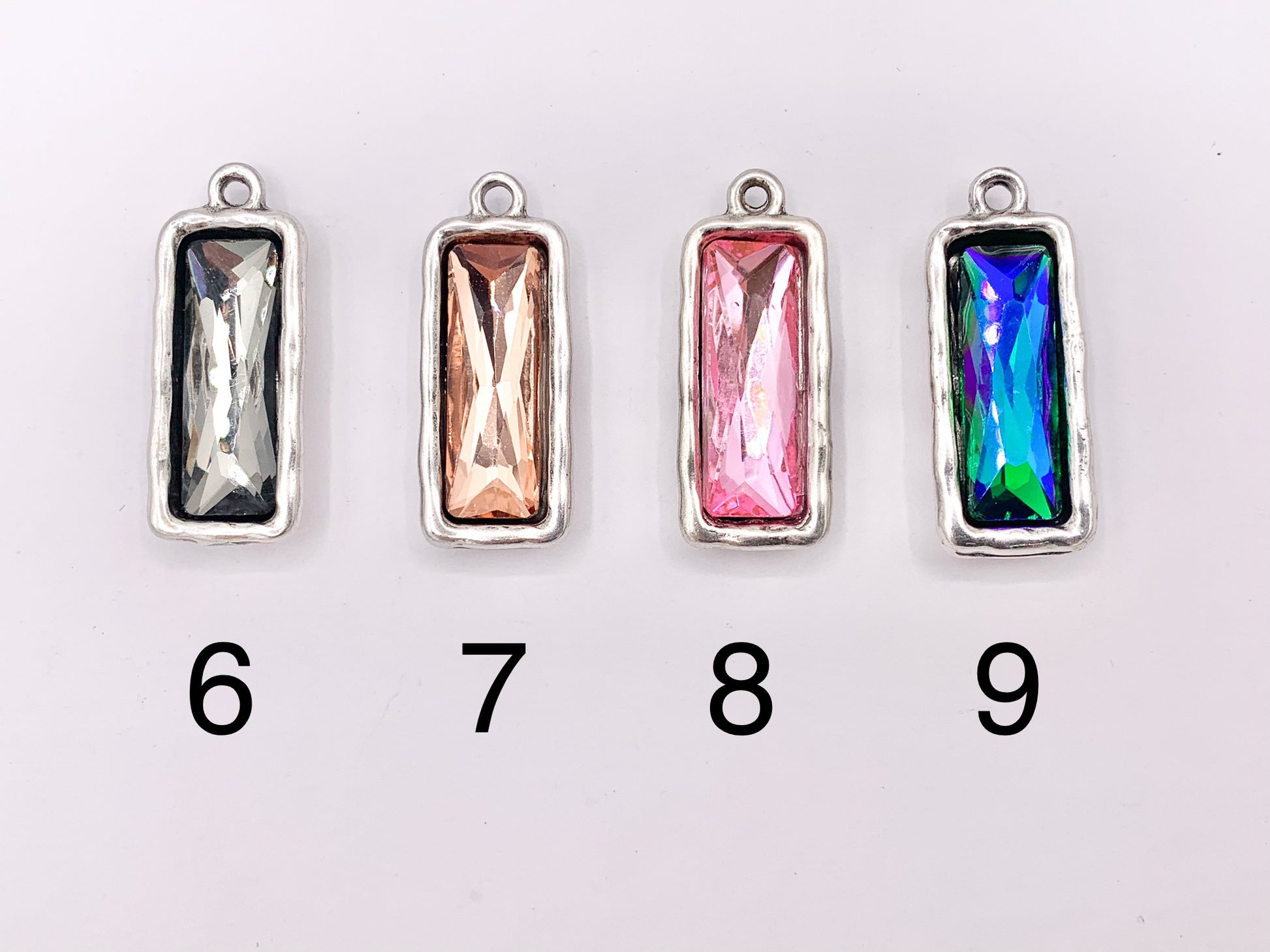 13x33mm Pewter Soldered Crystal Skinny Rectangle Silver And Bronze Pendant Available in 9 Colors 6 PCS