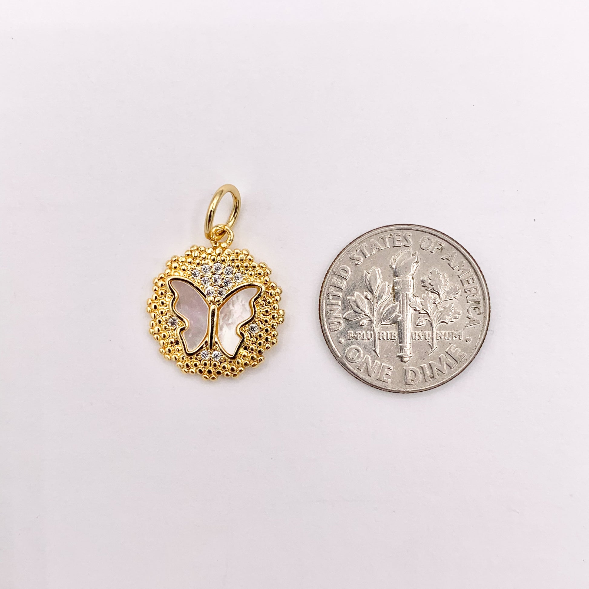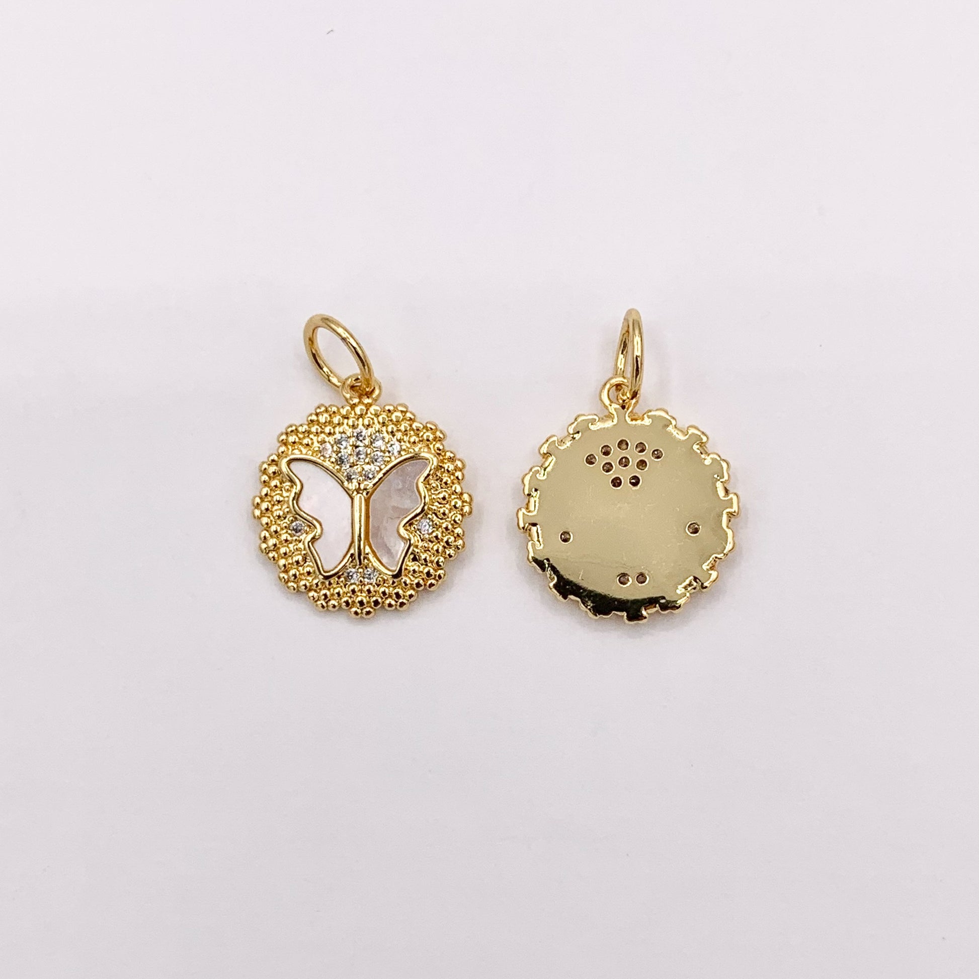 15mm Cute Shell Coin Butterfly Charm in Real Gold Plated 18K Micro CZ Pave Over Copper