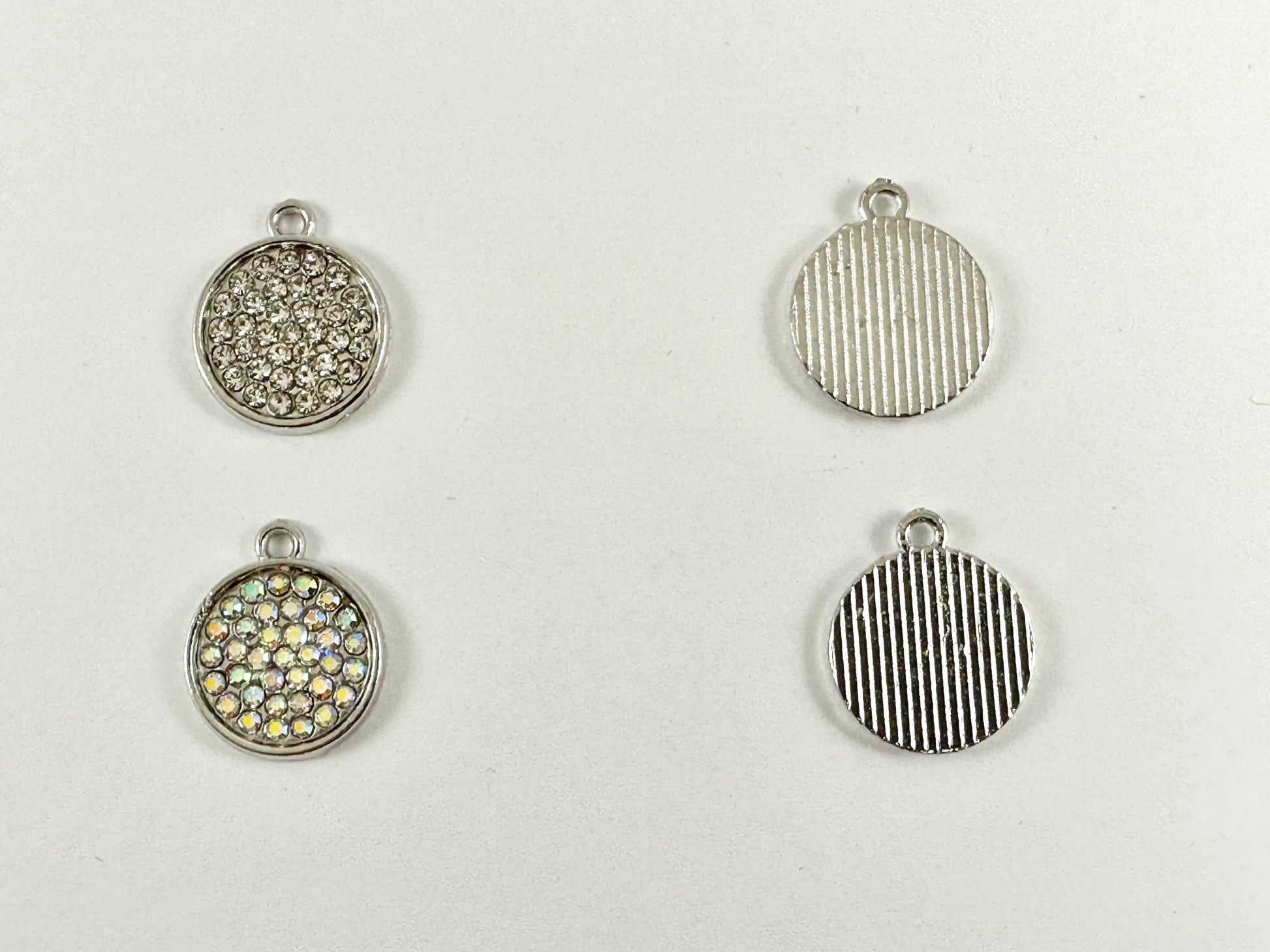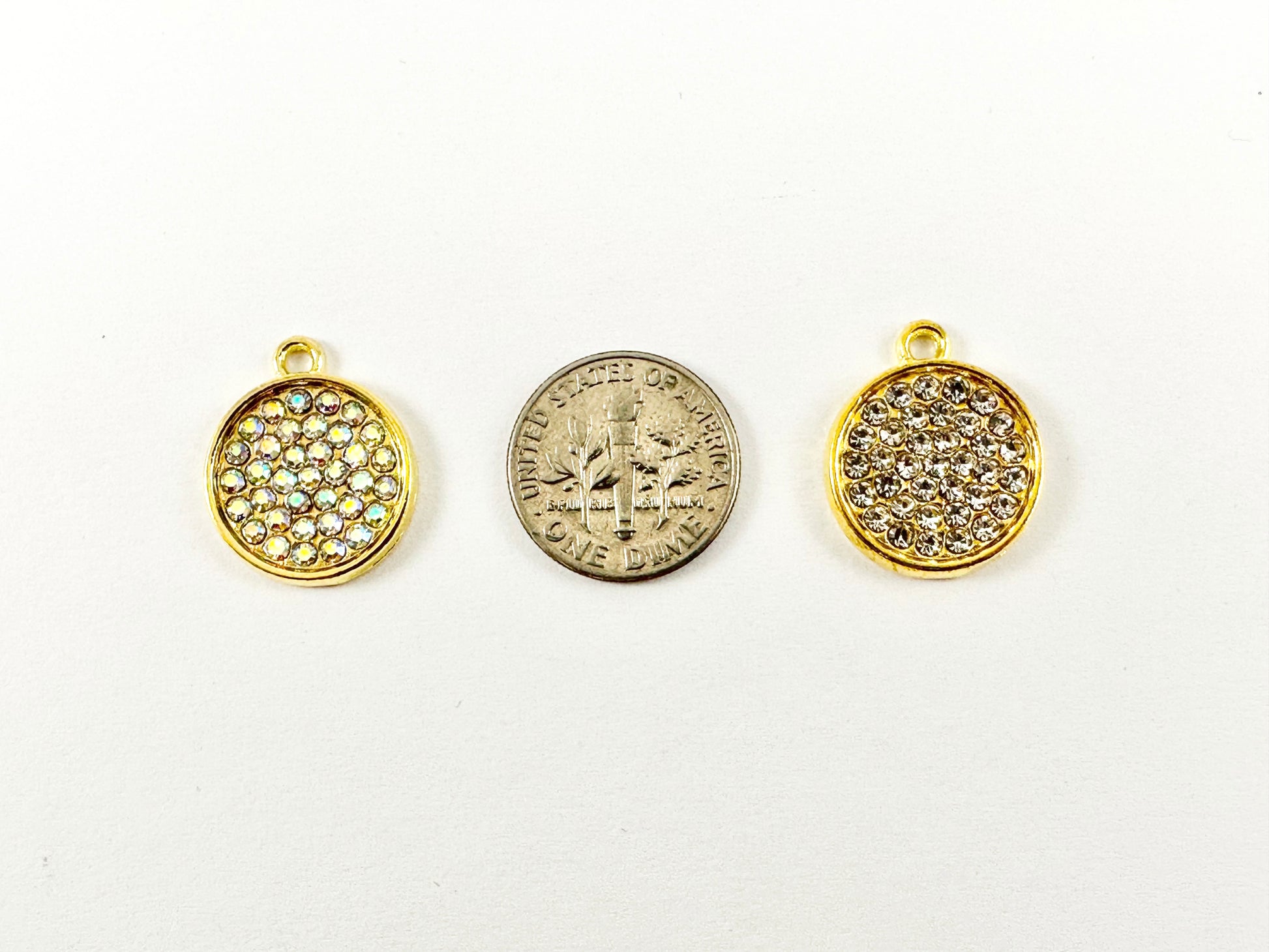 16mm Pewter Rhinestone Coin Charm Bezel 1 Loop Charm Available in Bronze, Copper, Gold, Silver and Gunmetal, Clear and Clear AB