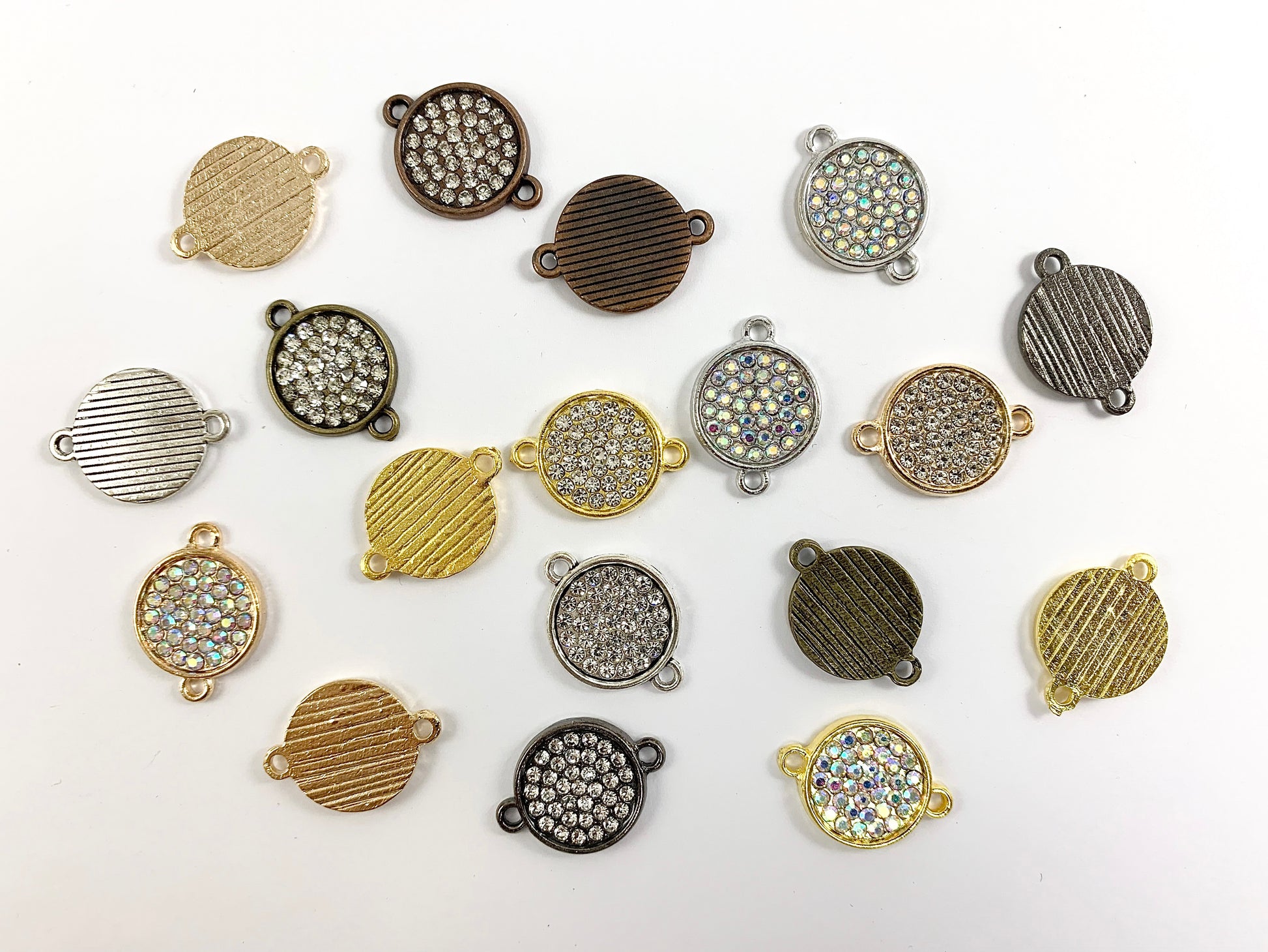 16mm Pewter Rhinestone Coin Connector Bezel 2 Loop Charm Available in Bronze, Copper, Gold, Silver and Gunmetal, Clear and Clear AB