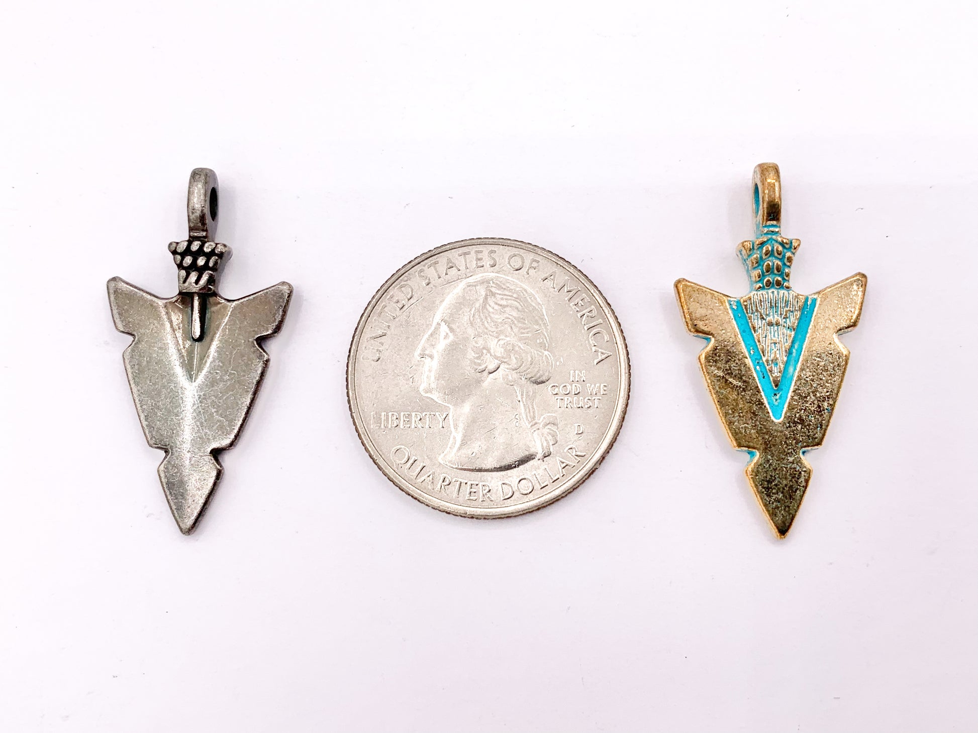 16x31mm Pewter Arrowhead Pendants in Gold, Silver, Copper, Brass, Gunmetal and Blue/Green Patina