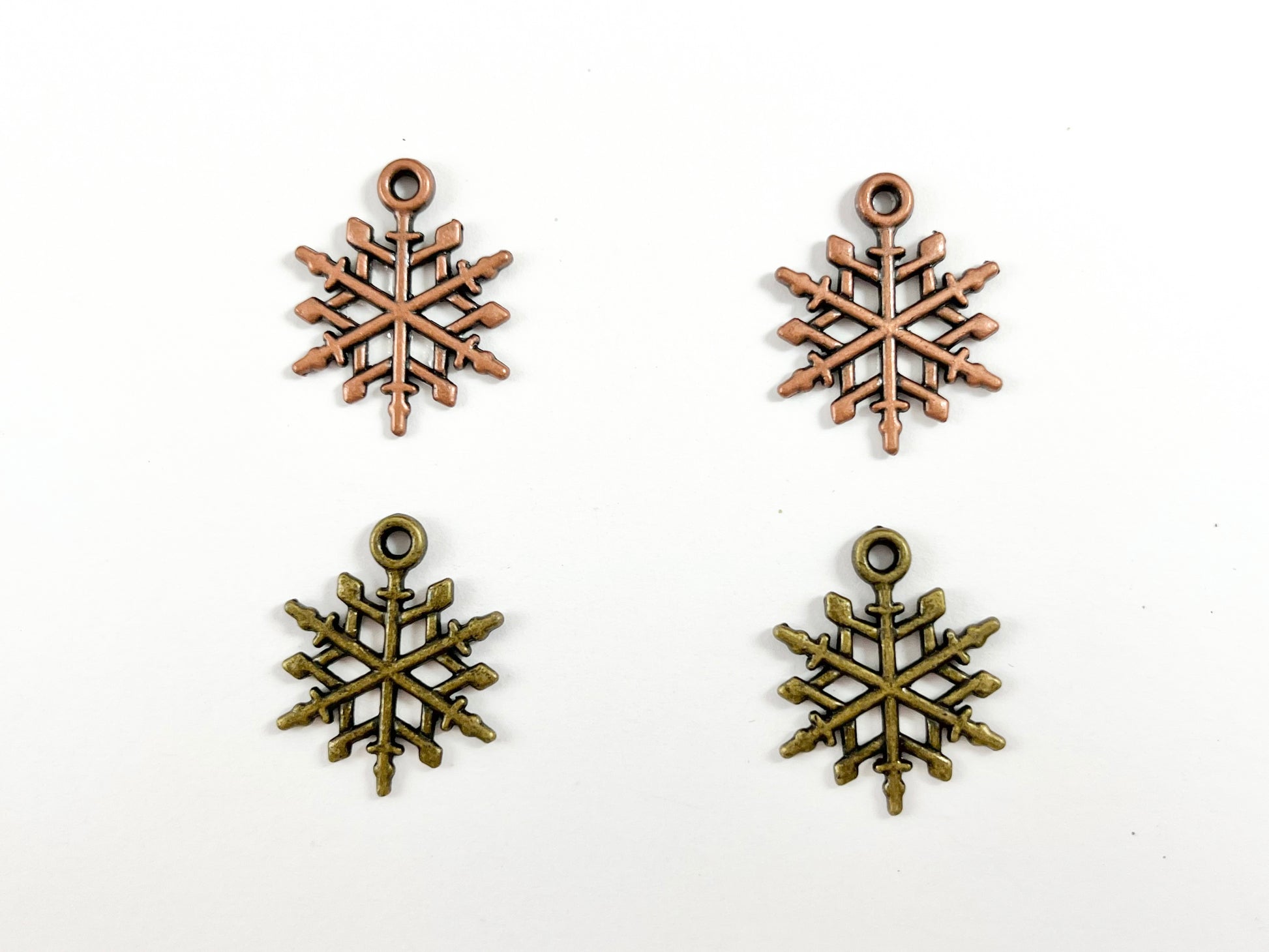 17mm Pewter Christmas Snowflake Charm Holiday Charm in Antique Copper and Brass | Bulk Option Available