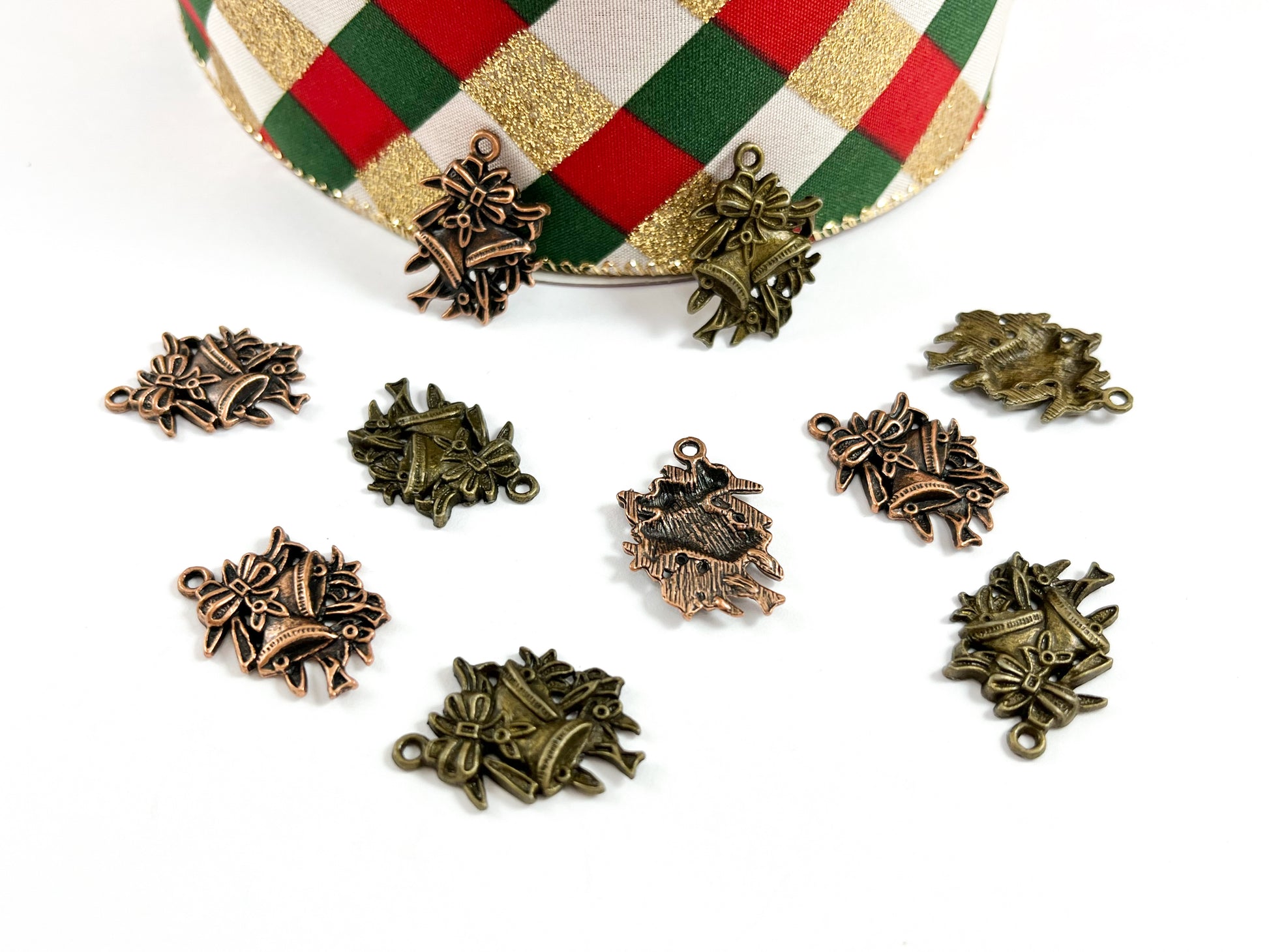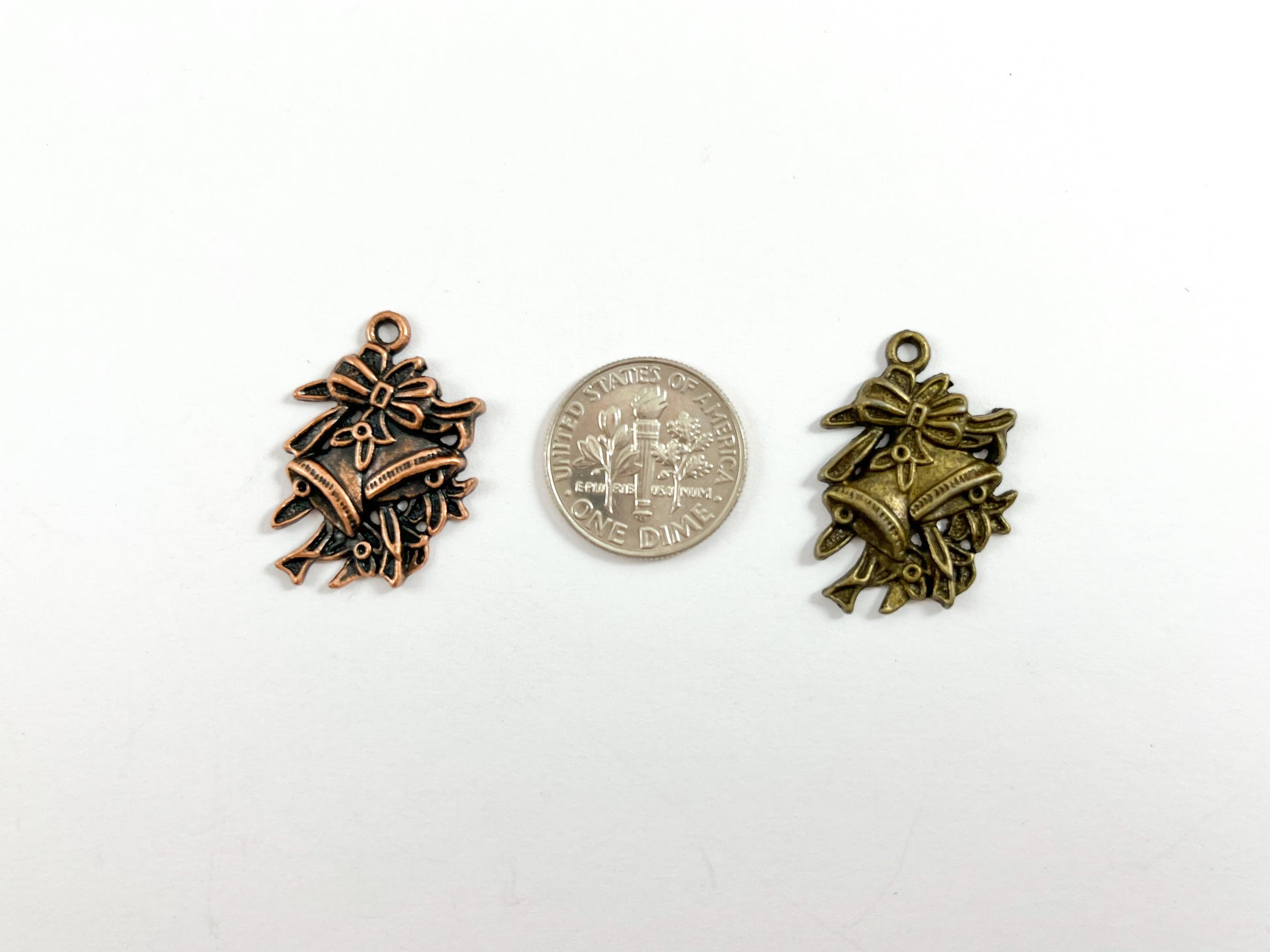 17x25mm Pewter Christmas Jingle Bell Charm Holiday Bells Charm in Antique Copper and Brass | Bulk Option Available
