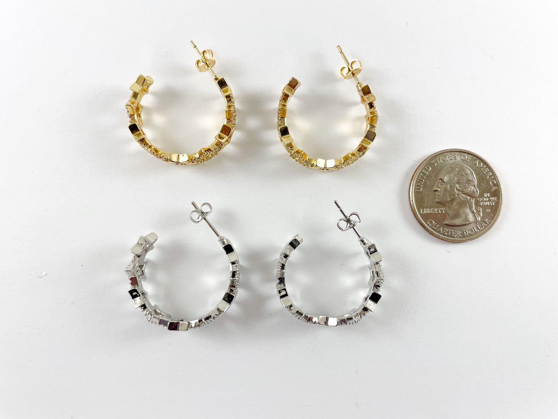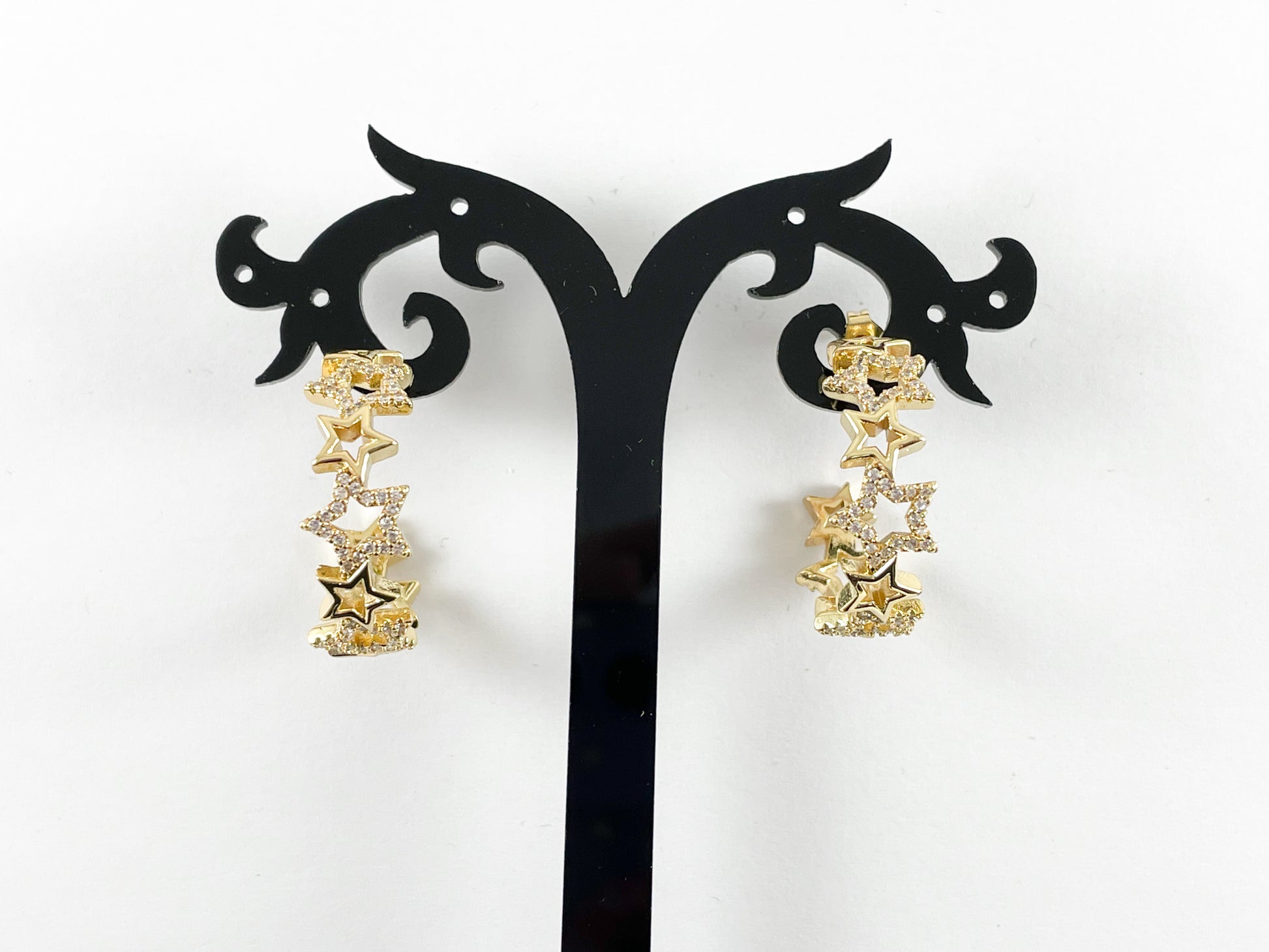18K Gold and Platinum Plated Cubic Zirconia Star Earring Hoop Over Copper 2 pairs