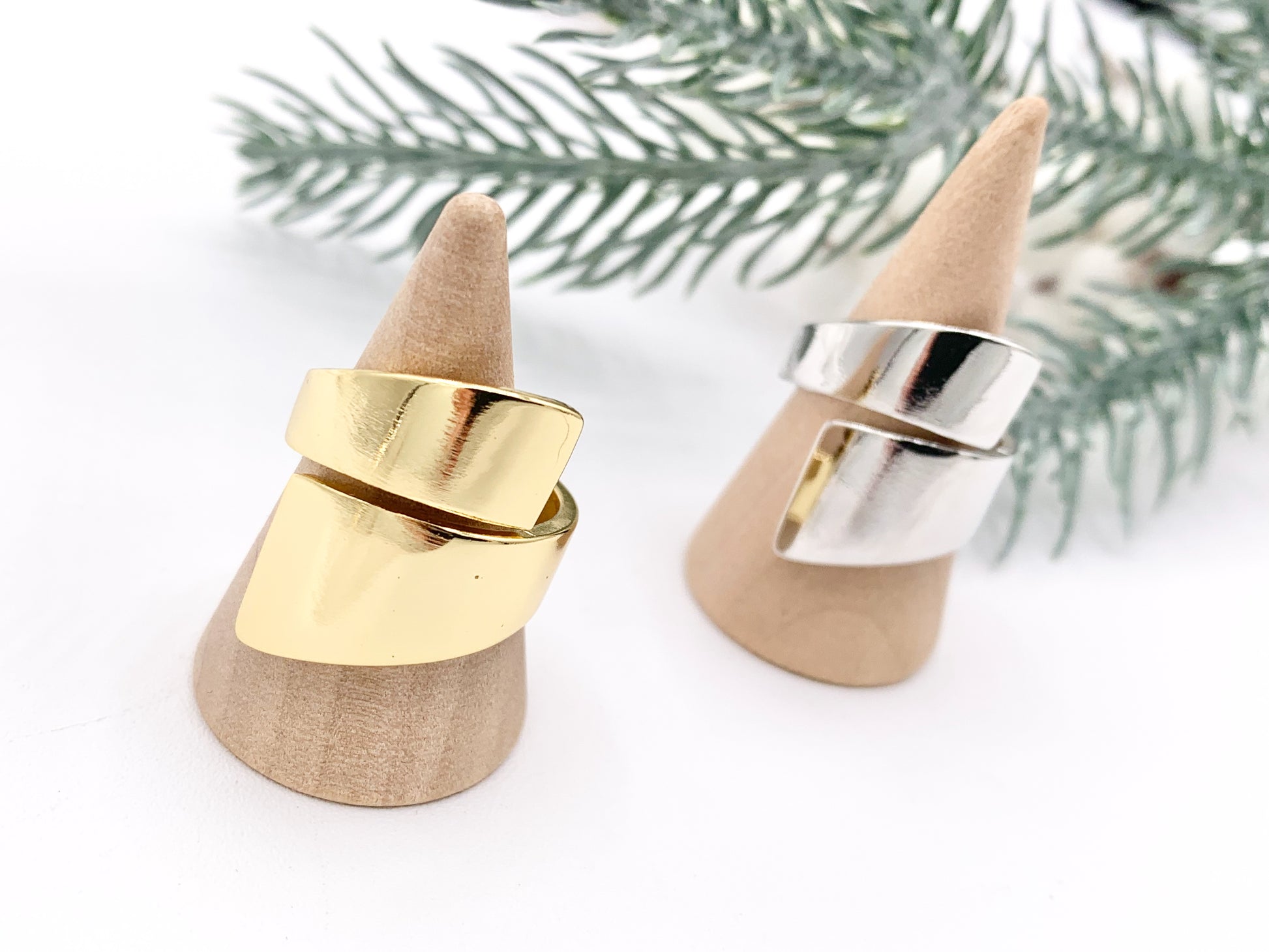 18K Gold and Platinum Plated Plain Wrapped Bypass Adjustable Ring