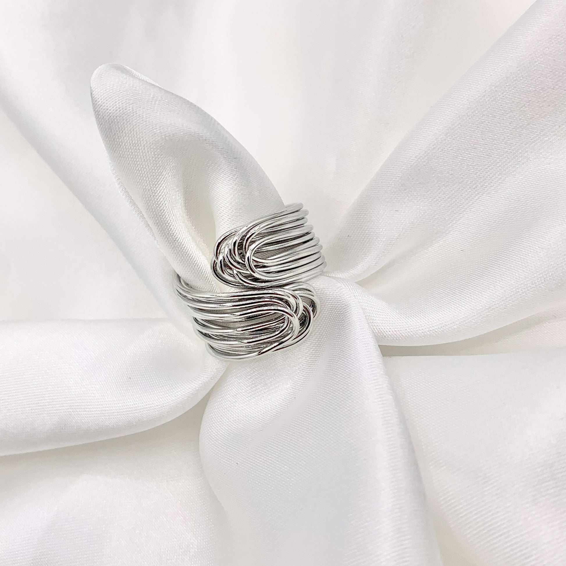 18K Gold and Silver Plated Plain Wire Wrapped Bypass Adjustable Ring 5 PCS