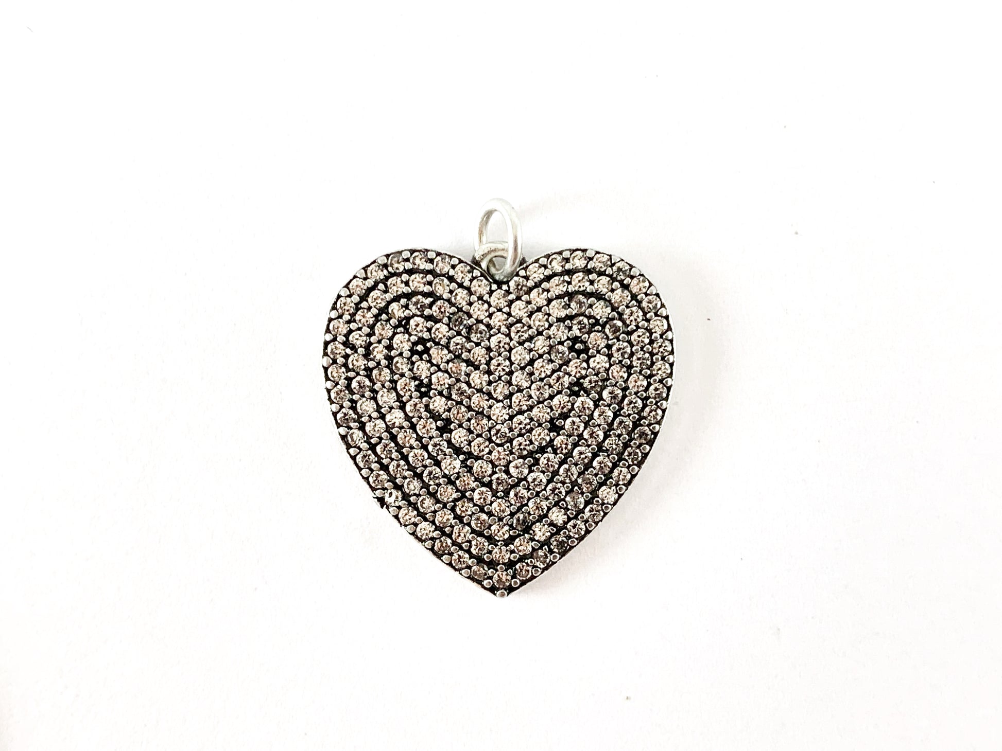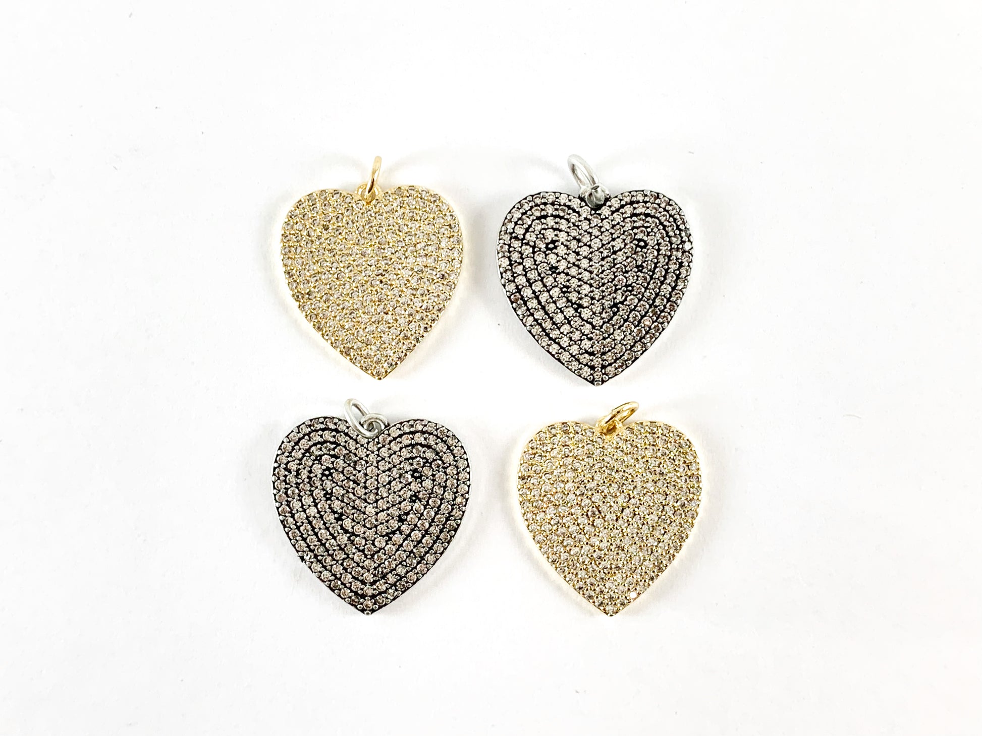 18K gold plated Antique Silver Plated Rhinestone CZ Pave Heart Pendant 3pcs