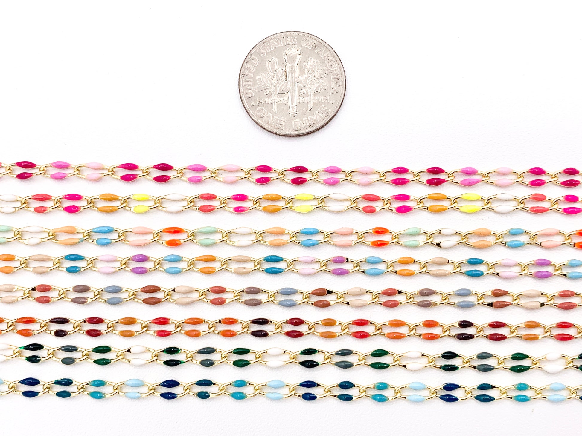 18K Gold Plated Colorful Enamel Plated Copper Skinny Holiday Seasonal Color Twisted Link Chain For Jewelry Making