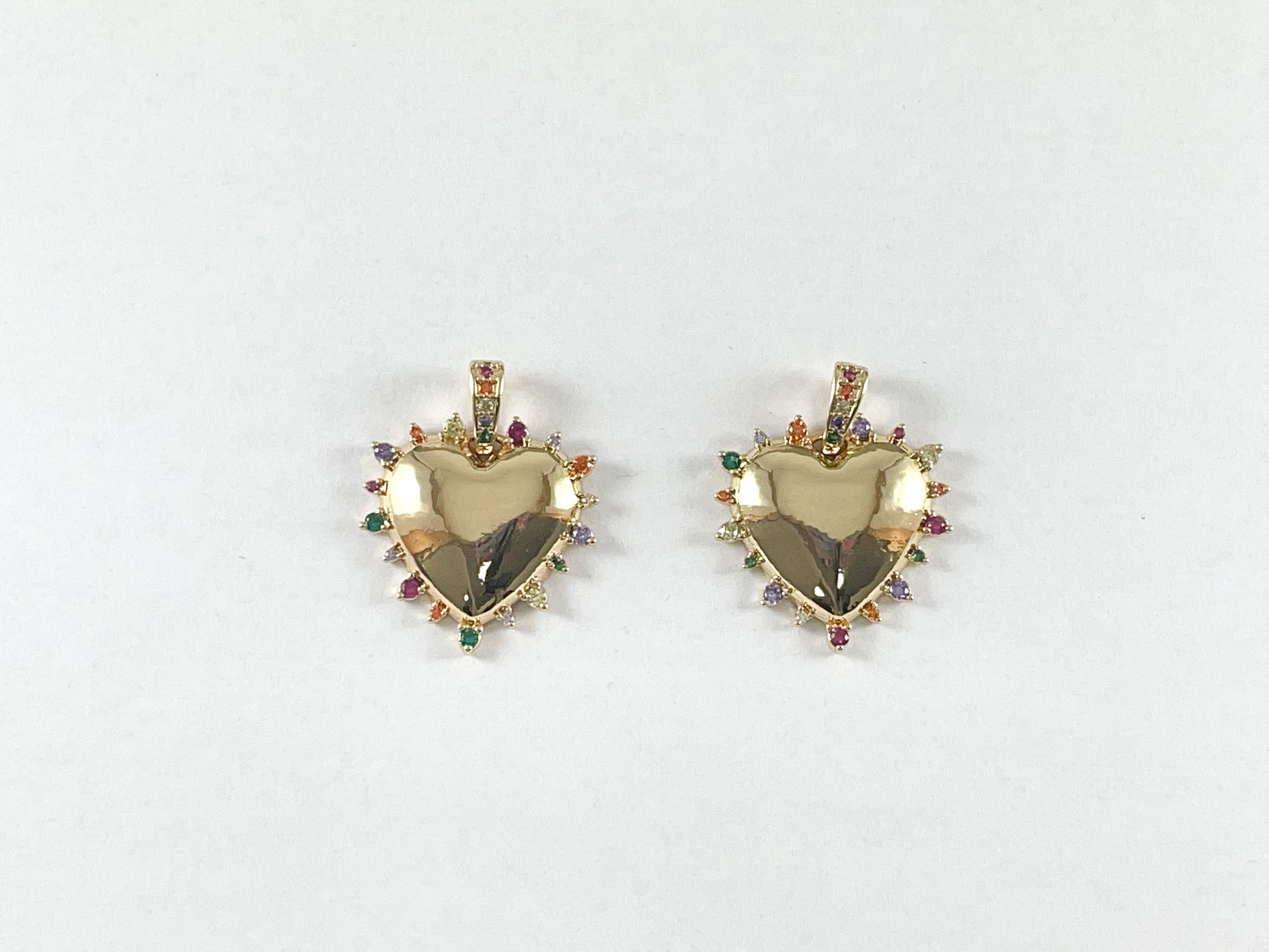 18K Gold Plated Copper Multi CZ Pave Heart Pendant Charm 4pcs