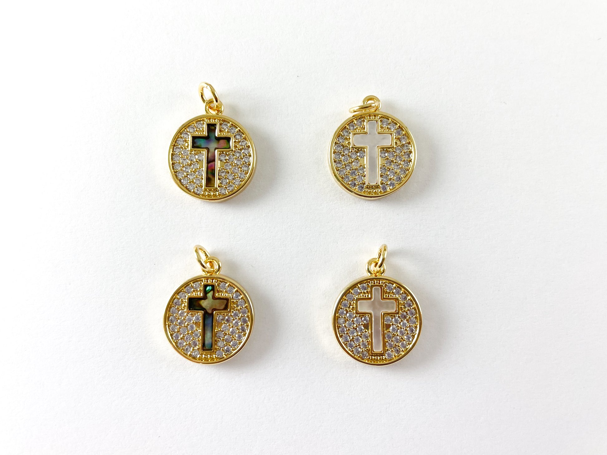 18K Gold Plated Cross Abalone Shell Pearl Coin Charm Pendant Over Copper 5pcs