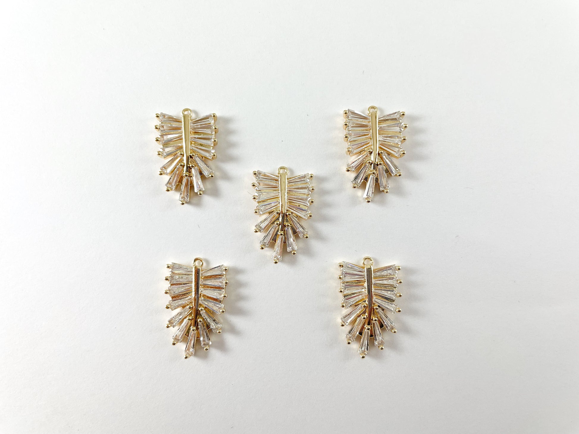 18K Gold Plated CZ Pave Baguette Feather Leaf Charm Over Copper 8pcs
