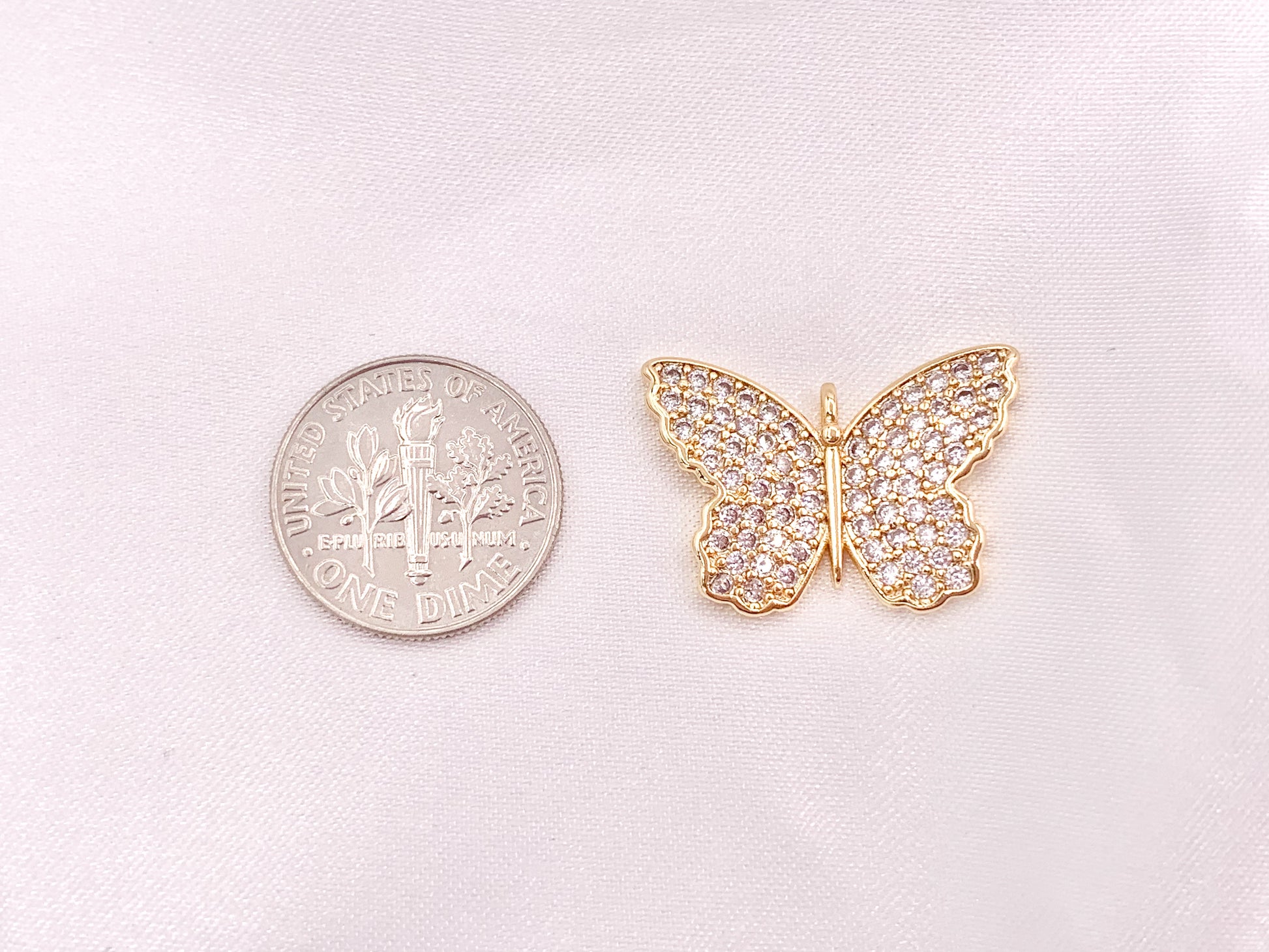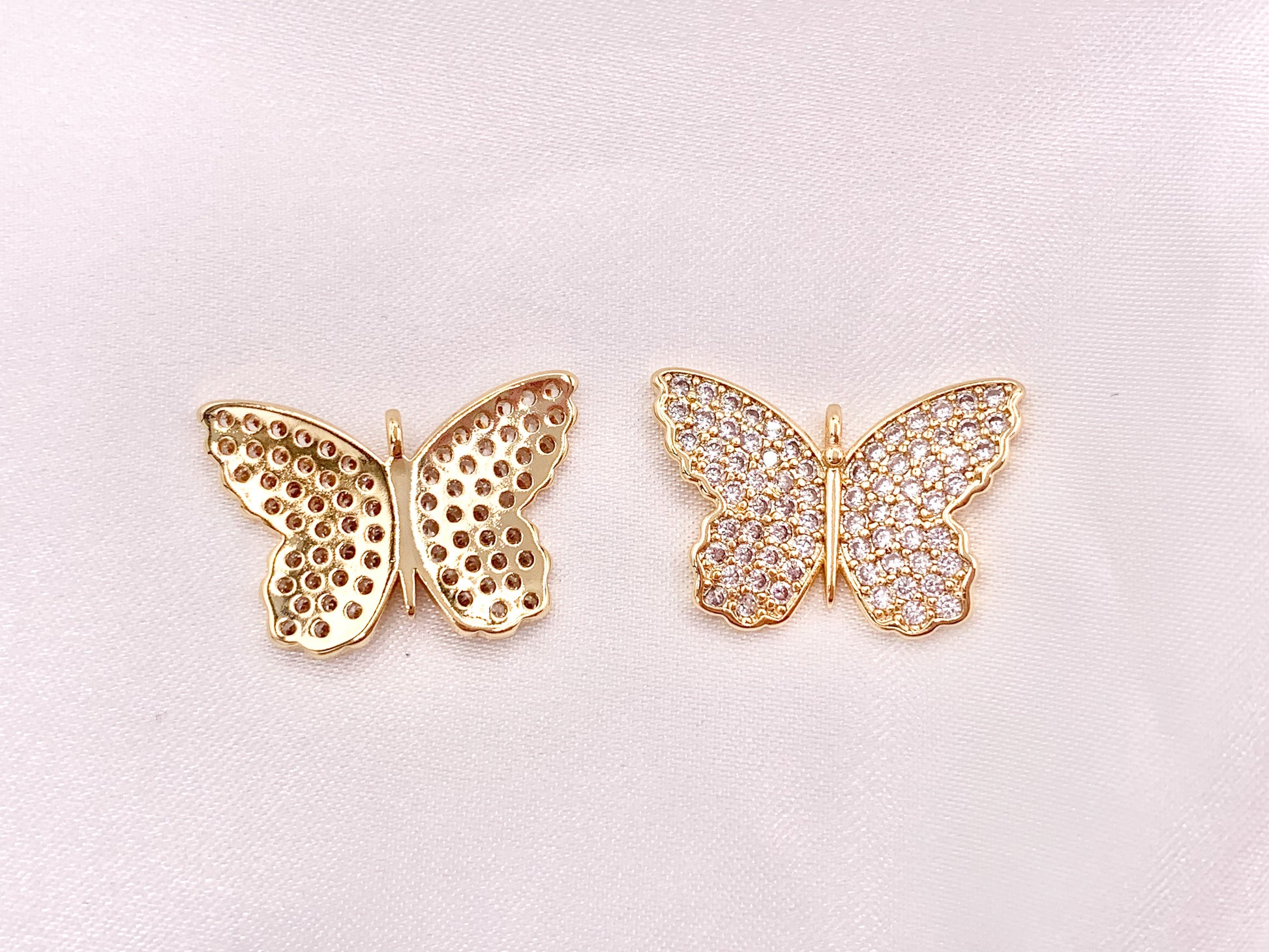 18K Gold Plated CZ Pave Butterfly Pendant Charms Over Copper