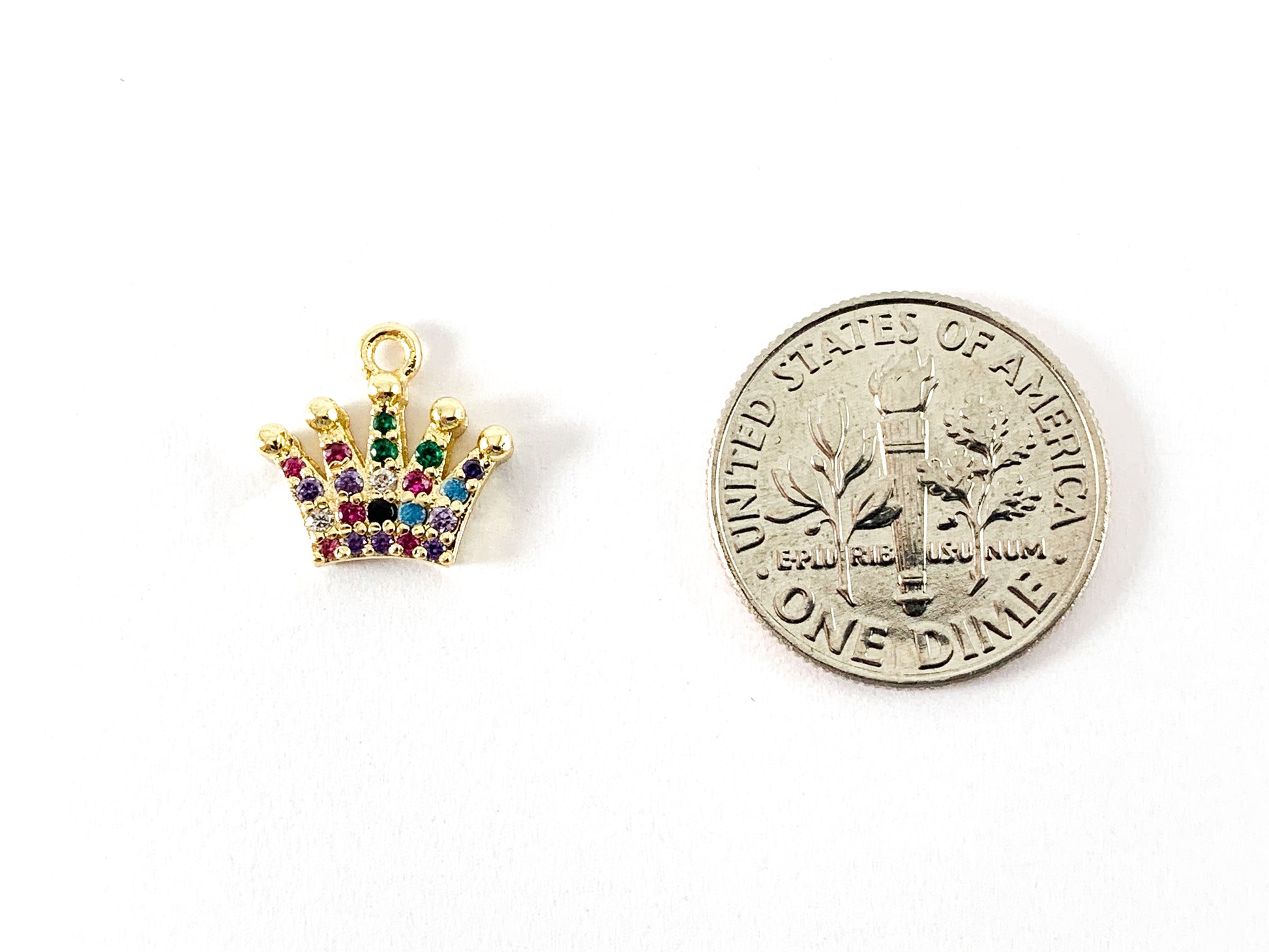 18K Gold Plated CZ Pave Multicolor Crown Pendant Over Brass 6PCS