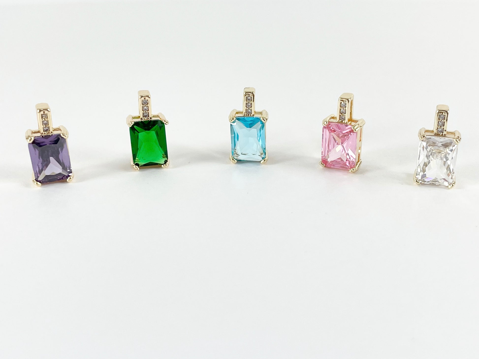 18K Gold Plated CZ Pave Purple Green Clear Pink Blue Rectangle Mini Tiny Baguette Rhinestone Charms Over Copper 6pcs