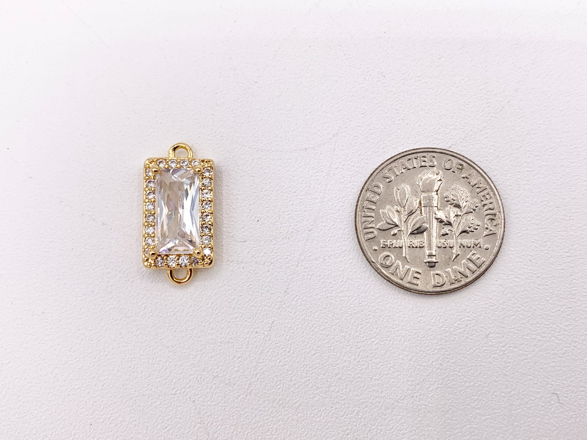 18K Gold Plated CZ Pave Rectangle Connector Over Copper 6 PCS
