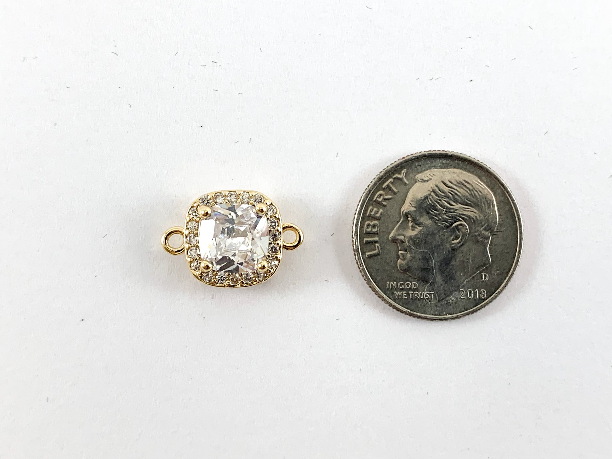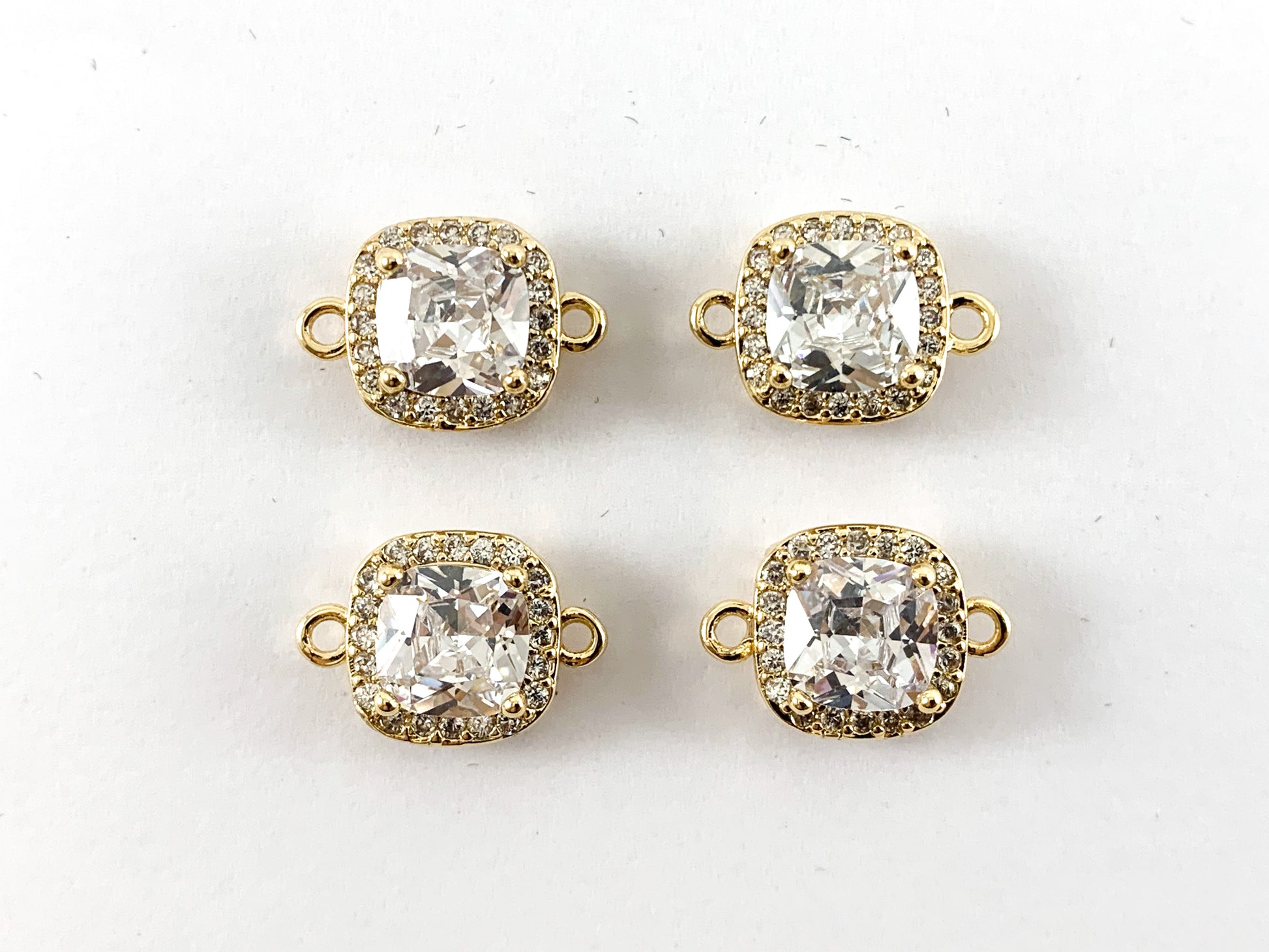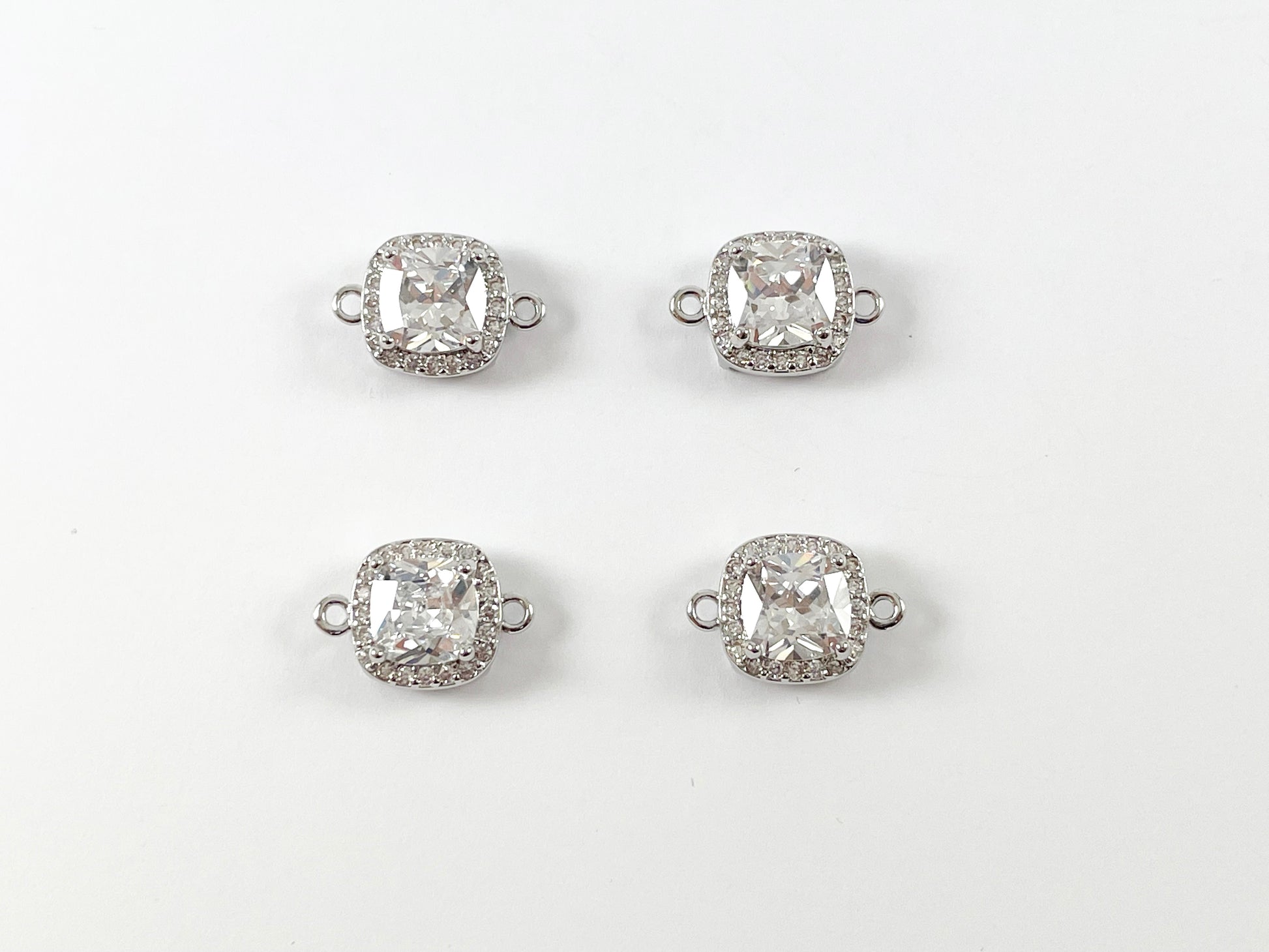 18K Gold/Silver Plated CZ Pave Square Connector Over Copper 6pcs