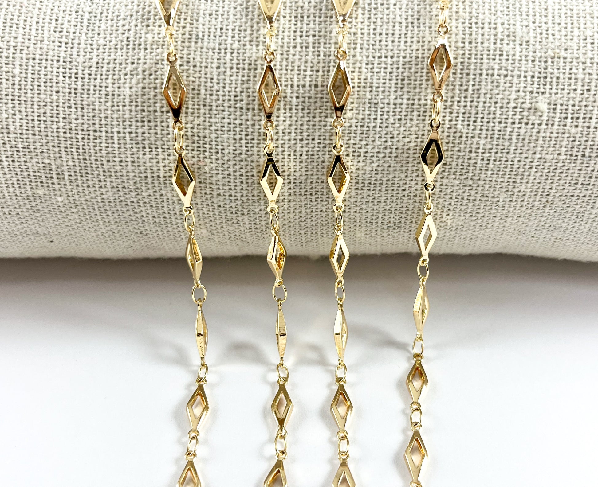 18K Gold Plated Dainty Skinny Diamond Shape Chain By The Yard for Necklace and Bracelet Making