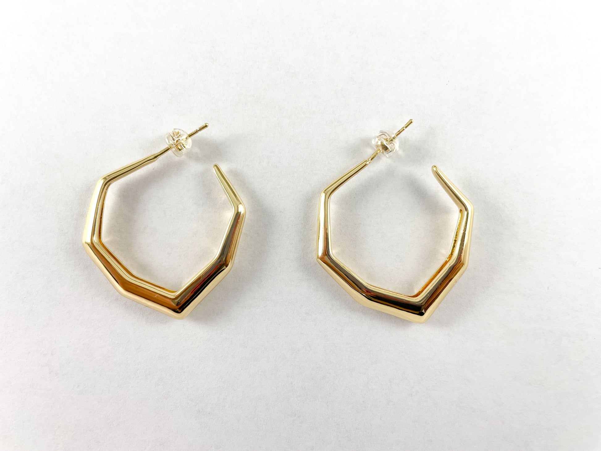18K Gold Plated Geometric Minimalist Hoop Earring Over Copper 3 pairs