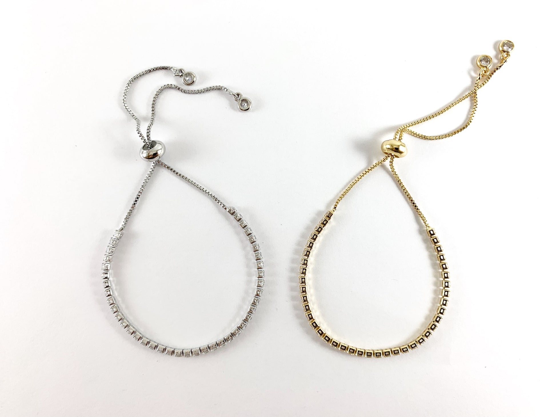 18K Gold/Platinum Plated Rainbow Multi Rhinestone Box Chain Dainty Slide Adjustable Bracelets 5pc