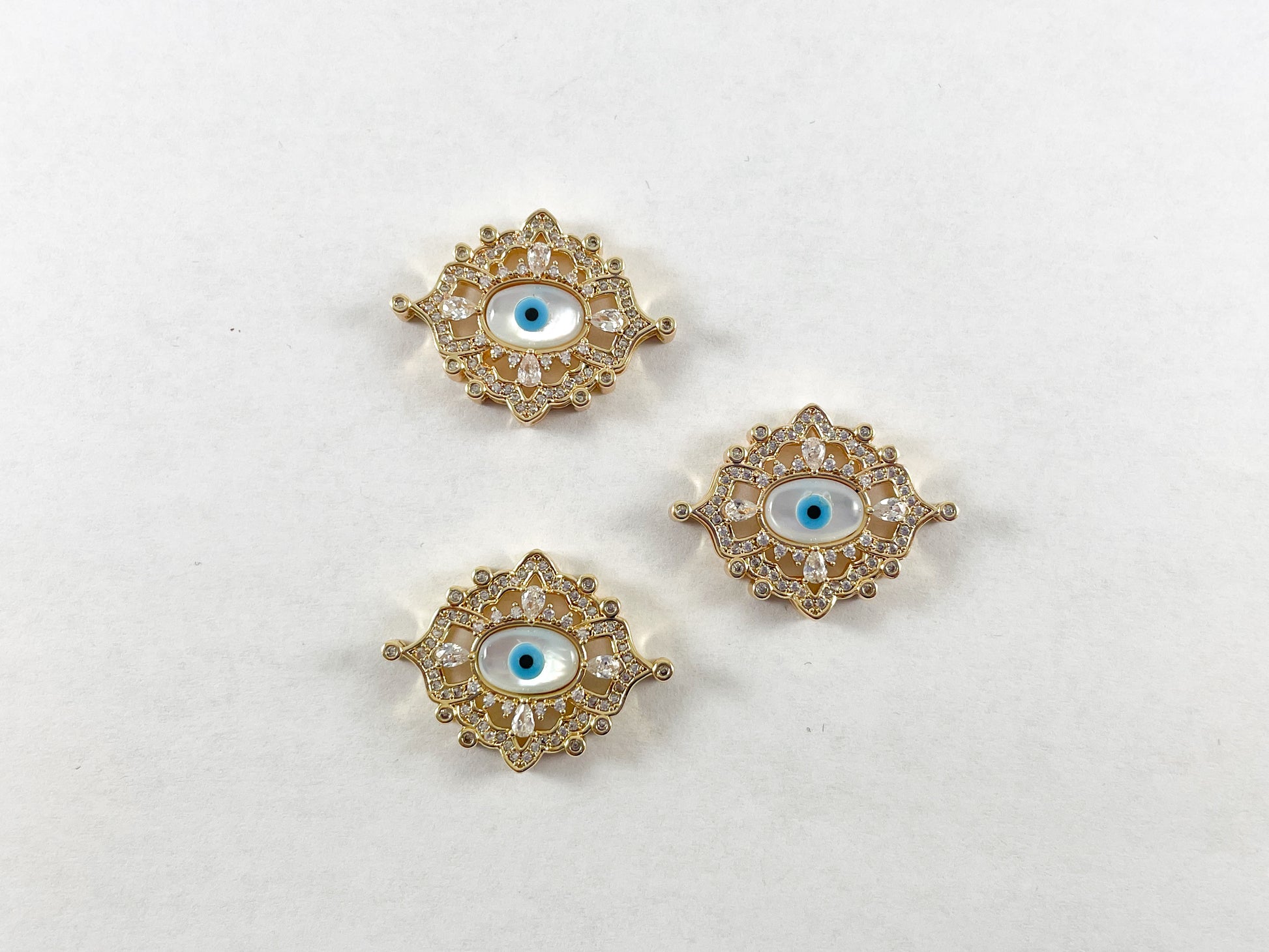 18K Gold/Silver Plated CZ Pave Fancy Elegant Eye Connector 3pcs