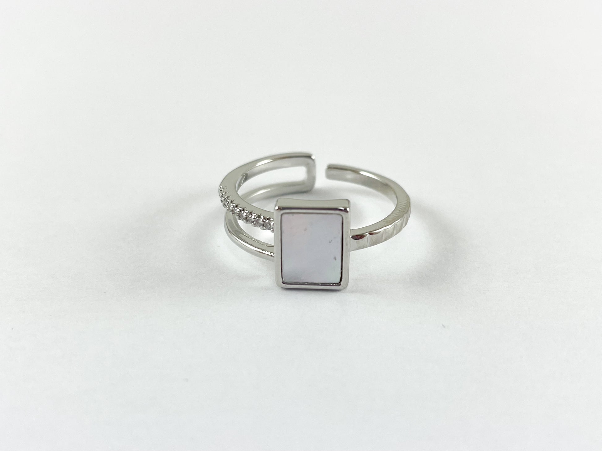18K Gold/Silver Plated CZ Pave White Lip Shell Pearl Rectangle Double Banded Adjustable Ring 4pcs
