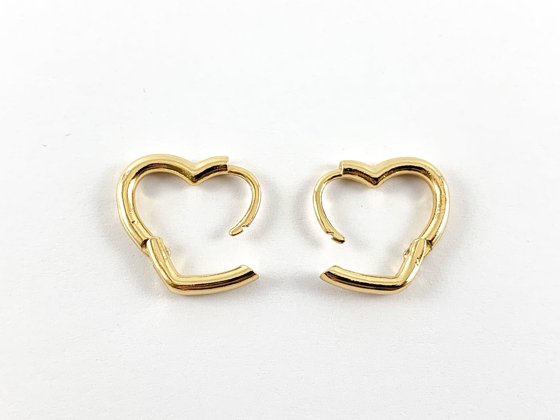 18K Real Gold Plated Minimalist Heart Hoops Open Side Earrings 5 pairs