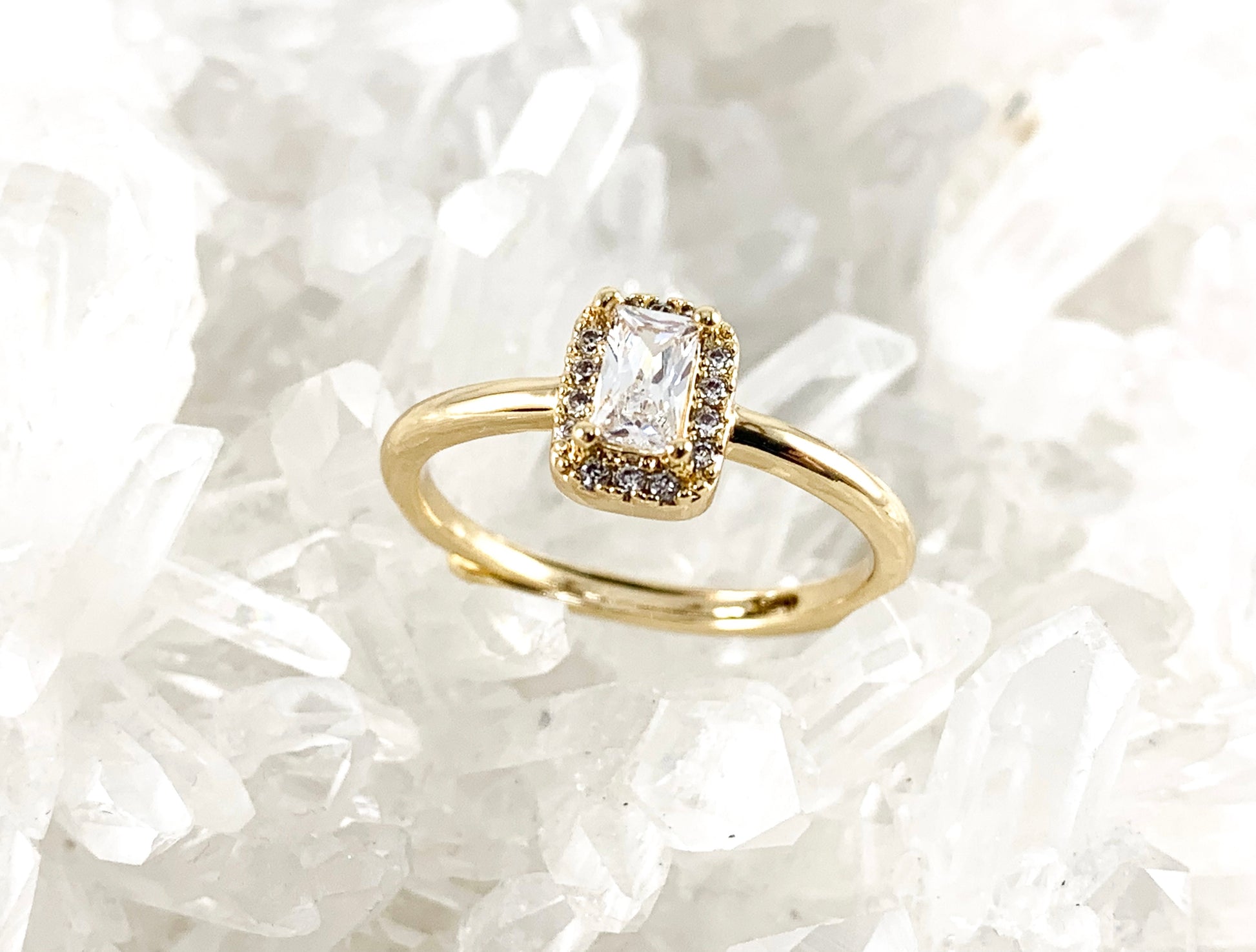 18K Real Gold Plated Rectangle CZ Pave Adjustable Ring 6PCS